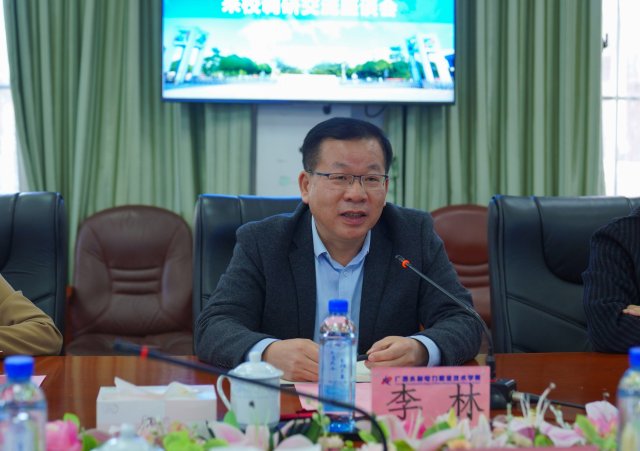11月17日上午,广西物流职业技术学院朱海强院长一行到学校参观交流,学校校长李林、副校长蒋文沛以及党委办公室、财务处、资产管理中心、审计室等相关部门负责人陪同参加。