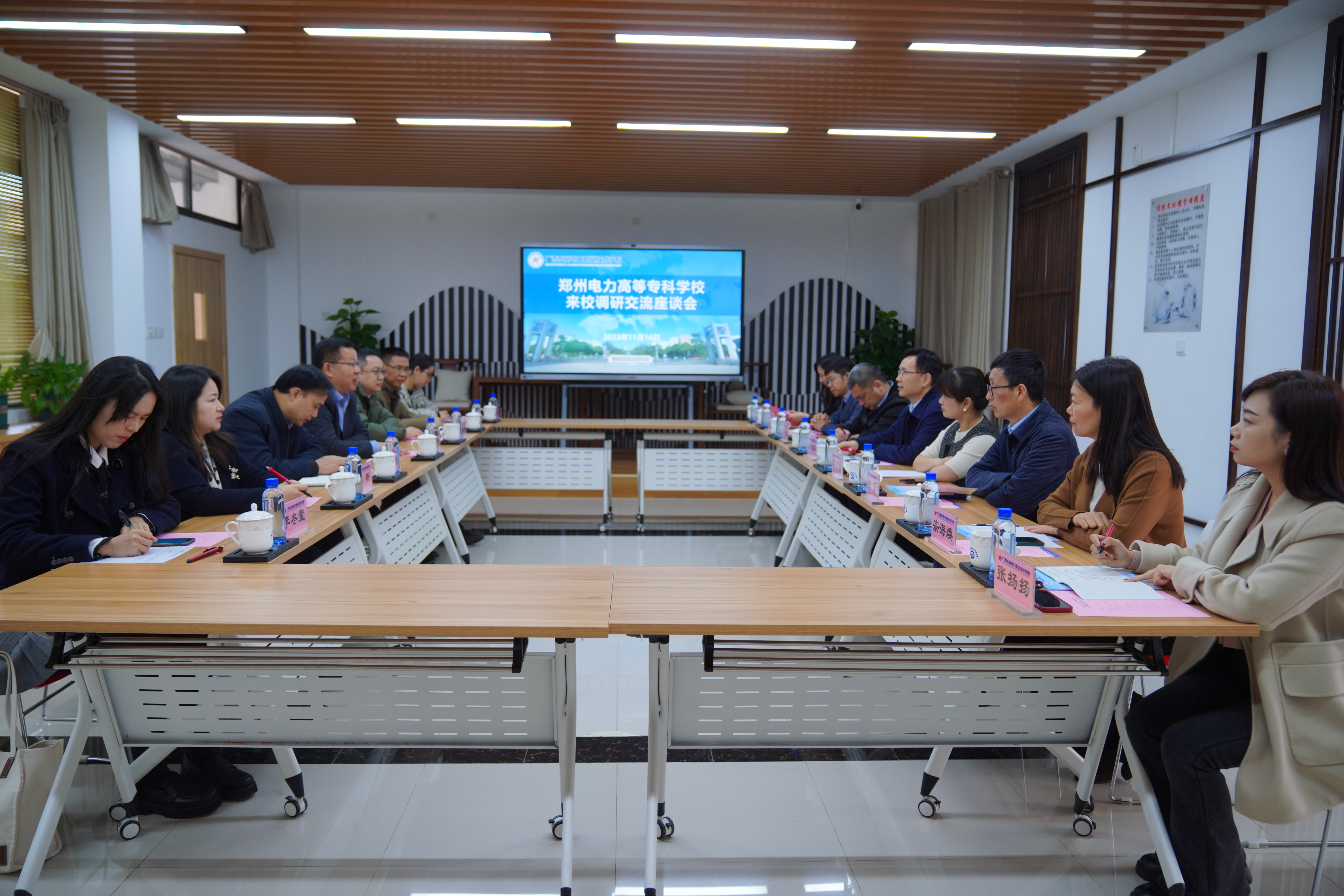 随后双方分别围绕学生实习管理、大型考试组织、教师教学能力大赛、学生技能竞赛、校园文化建设、科技创新工作开展情况、留学生管理和境外项目校企合作等方面的经验做法进行了深入交流。