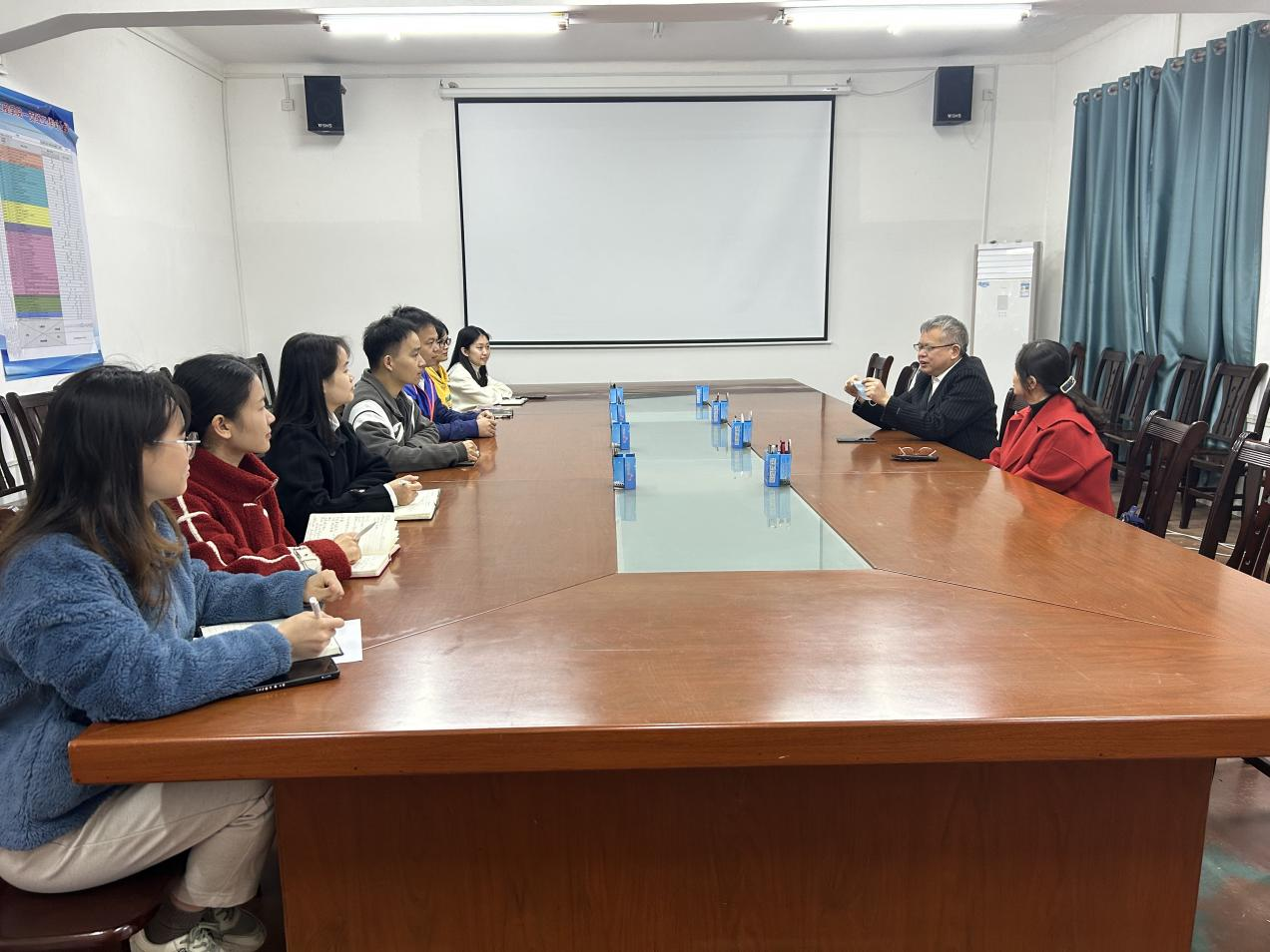 座谈会上,蒋文沛副校长对学院学生的学业和就业情况进行了解,并提出具体指导意见,他强调,要重视学生的全面发展,提高学生的综合素质和就业竞争力,为学生的未来发展奠定坚实的基础。同时,蒋文沛副校长还很关心辅导员的个人发展,他指出,辅导员是学生管理工作的核心力量,学校一直很重视辅导员队伍建设,希望大家多学习、多总结,在专业化和职业化道路上快速成长。