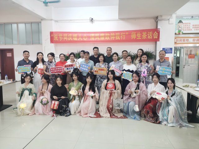 品月饼、话清廉、庆华诞,9月25日,一场别开生面的师生茶话会在长堽校区思源轩二楼开展,本次茶话会的主题是“双节同庆暖人心,清风廉政伴我行”,学校副校长苏超、总会计师潘念萍参加活动,活动上,同学们秀汉服,展示中华传统文化之美;班级代表展花灯,讲述利用莲花、竹子原型制作花灯,寓意着清廉高雅,活动最后,师生合唱《没有共产党就没有新中国》,表达对祖国华诞的深切祝愿。
