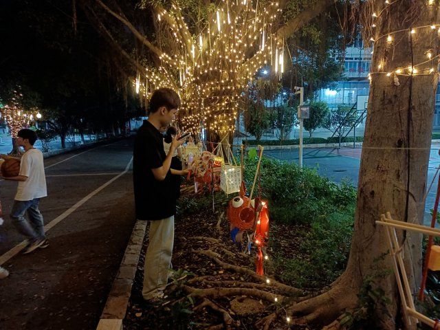 9月24日,同学们将自己的班级制作好的花灯挂在校园林荫道上,玉兔造型憨态可爱,莲花造型典雅高洁,手绘竹菊栩栩如生。夜幕降临,花灯内的灯光亮起,映照出浓厚的中秋节氛围,每个花灯上挂着一个灯谜,吸引大量同学前来赏花灯猜灯谜。本次赏花灯猜灯谜活动将持续到9月29日。