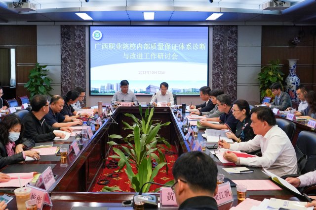 [本网讯]10月12日下午,学校副校长刘存香和质量管理办公室主任龙艳红应邀参加了在广西工业职业技术学院举行的广西职业院校内部质量保证体系诊断与改进工作研讨会。自治区教育厅职成处处长覃壮才、副处长廖造壮以及部分中高职院校领导共37人参加了此次会议。
