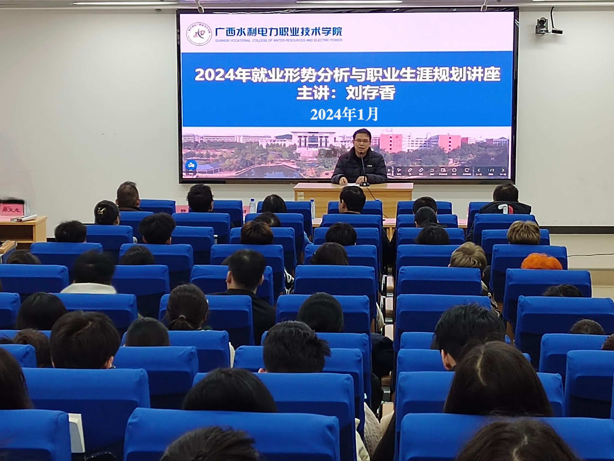 [本网讯]近日,为帮助应届毕业生认清当前就业形势,做好职业生涯规划,学校刘存香副校长在长堽校区第四教学楼1-5教室给2024届毕业生开展了2024年就业形势分析与职业生涯规划讲座。各学院就业工作负责人、就业指导老师以及2024届毕业生代表参加了本次讲座。