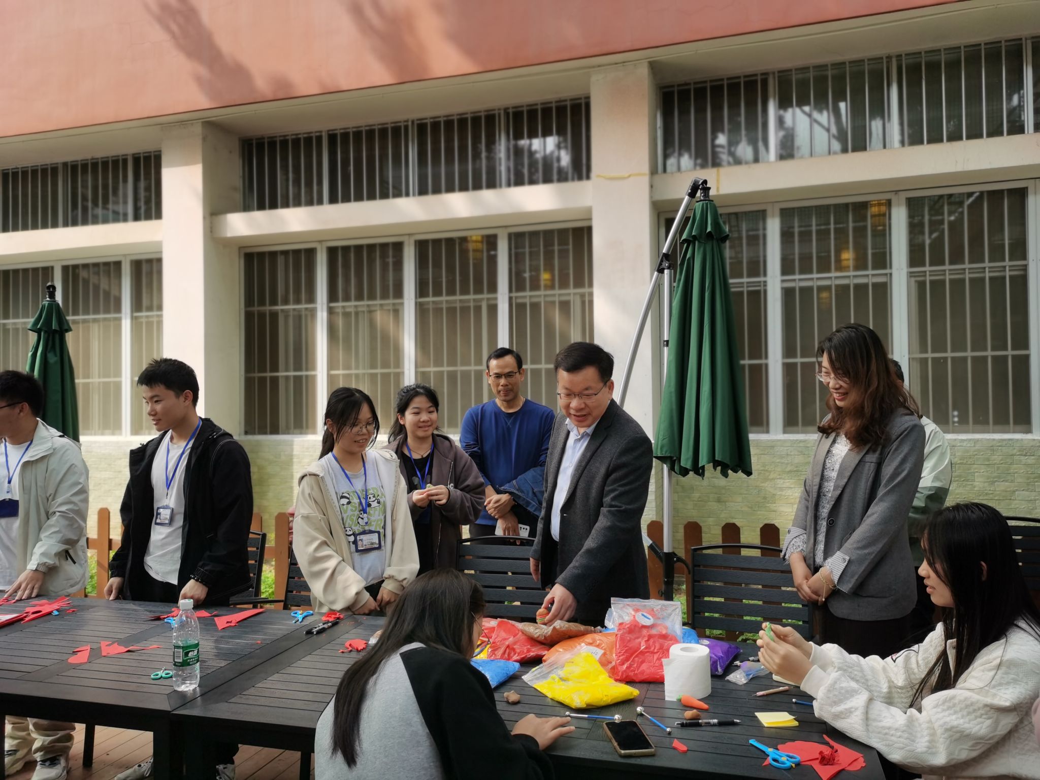 师生同乐,艺术悦心。在经管学院实训楼茶艺室外,经管学院团委、心理辅导站还布置了艺术舒心的活动区,分别有空灵鼓乐器体验,非遗剪纸、手工捏橡皮泥、心情寄语等活动内容,师生们踊跃参与。活动现场中,师生们有的看着曲谱敲打空灵鼓,不同的音符奏响出悦耳的音乐声;有的剪纸,沿着红纸的虚线纹路裁剪,美丽图案跃然而出;有的手工捏橡皮泥,水果、面包、小花朵,怎么捏都好玩,现场氛围其乐融融。