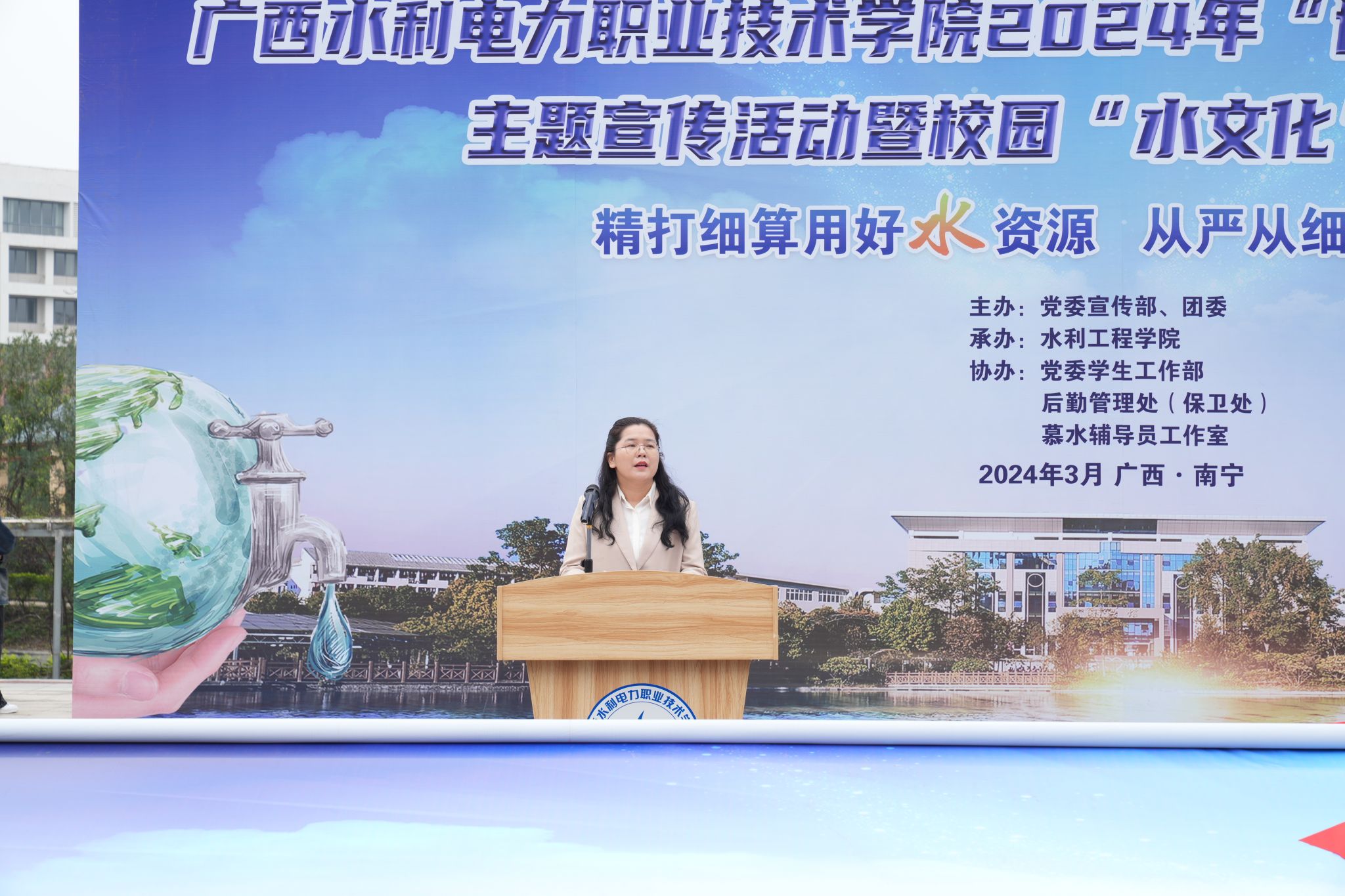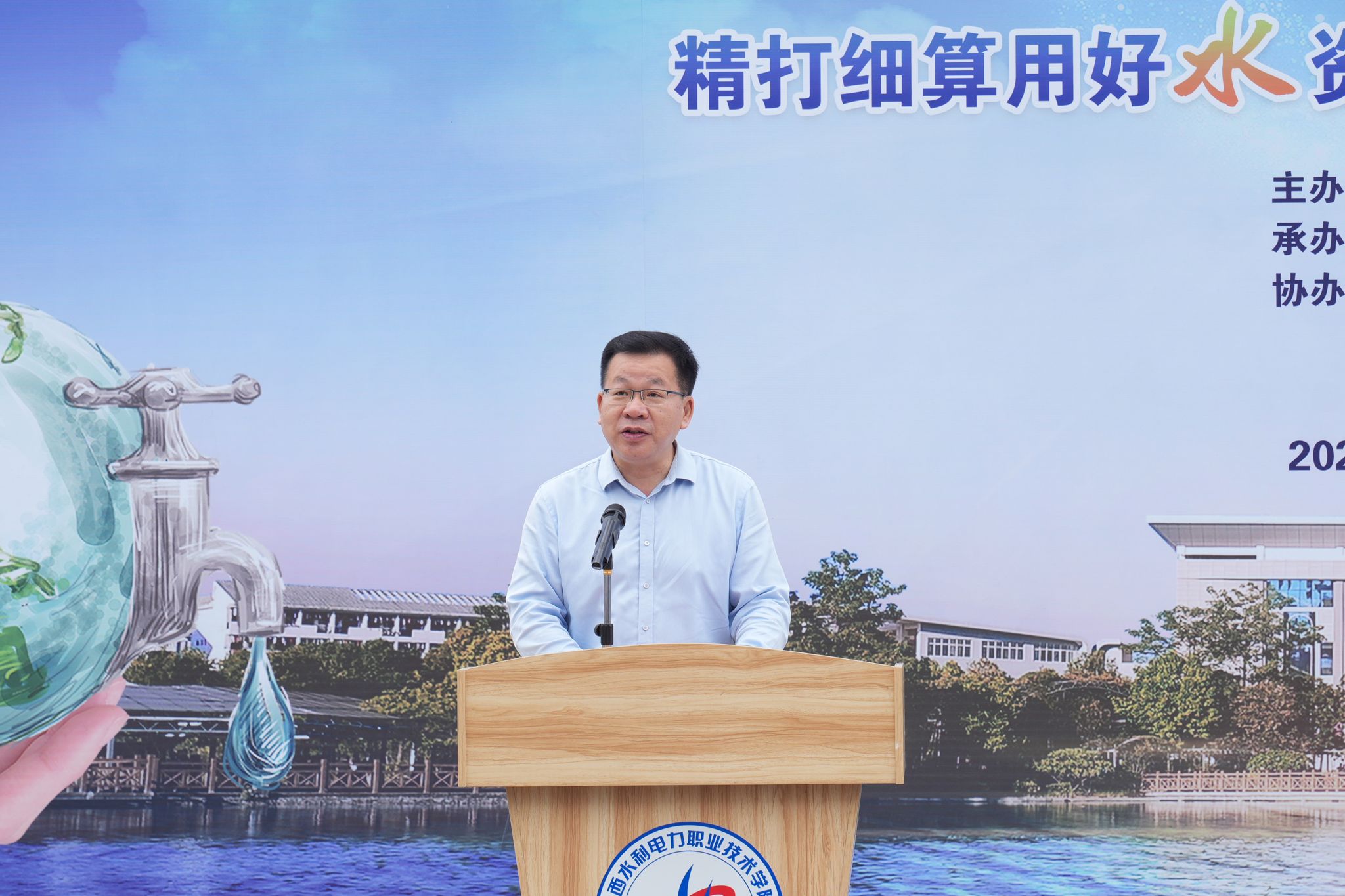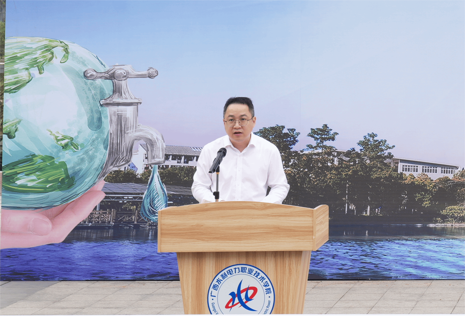 李林在致辞中指出,学校秉承“上善若水,自强不息”的校训精神,积极构建以水文化为统领的文化育人体系,在办学实践中深挖水之内涵、涵养水之品质、弘扬水之精神,将水文化打造成了校园文化的亮丽底色和精神内核。并提出三点要求,一是提高政治站位,增强节水意识。全校师生要深入贯彻落实习近平总书记的治水思路和关于治水重要论述精神,增强节约和保护水资源的自觉。二是精准发展定位,落实节水行动。精心谋划,精准施策,全方位打造节水型校园,为实现国家节水行动的落地生根贡献力量。三是坚持精益求精,锻造文化品牌。全力推动学校水文化品牌塑造,为人才培养和水利事业的蓬勃发展提供有力的精神支撑和文化引领。