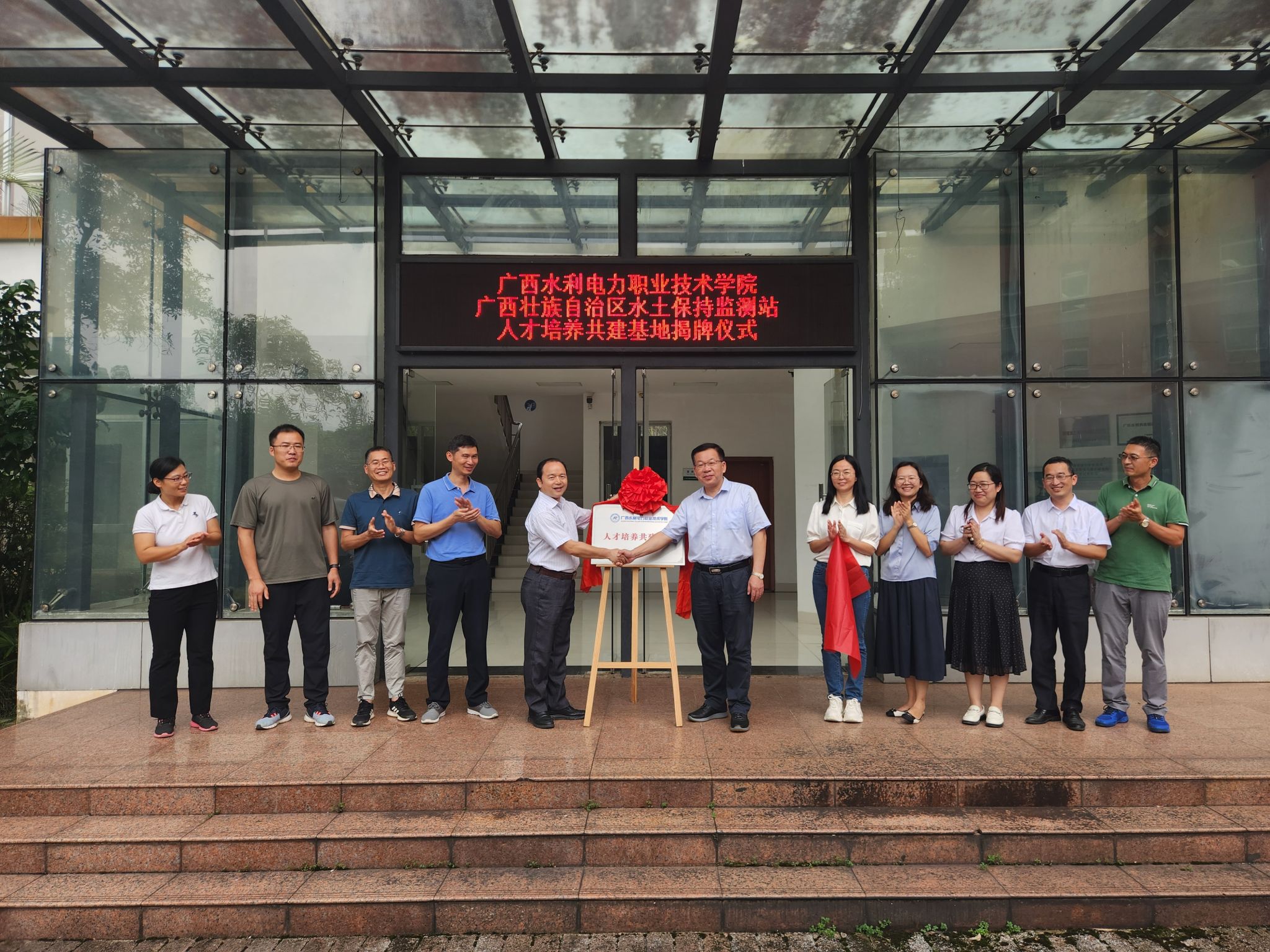 [本网讯]5月16日下午,学校校长李林率教务处、发展规划与科技开发处、水利工程学院赴广西木棉麓水土保持科技示范园,与广西壮族自治区水土保持监测站(以下称水保站)开展校企合作签约挂牌活动。水保站站长宁春鹏、副站长何衍海、监测技术科科长李茂、副科长蔡卓杰出席活动。