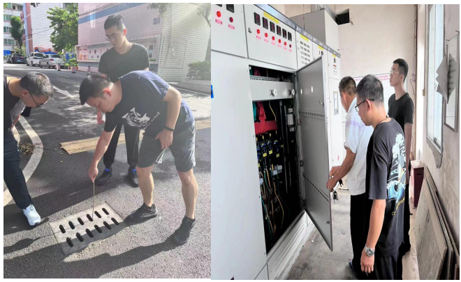 水电维修科检查校园路段排水情况及配电房安全运行情况