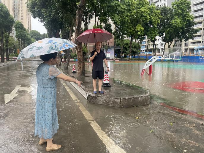 [本网讯]8月11日下午,南宁市气象台陆续发布雷雨大风黄色、暴雨红色预警信号,城区大部分地区出现40毫米~60毫米、局地100毫米以上的强降雨。由于雨量太大,学校长堽校区大门前内部道路严重积水,灯光球场、水工实训楼前、西江阁出现不同程度的内涝。得知情况后,苏超副校长第一时间到现场开展工作指导,后勤管理处(保卫处)、物业工作人员奔赴各处开展暴雨抢险救灾工作,在安全隐患易发点拉警戒线,紧急关停电梯等设备,检查路灯、变电箱等是否存在漏电情况,雨势得到控制后对内涝点进行排水,组织留校学生开展宿舍清理等行动。