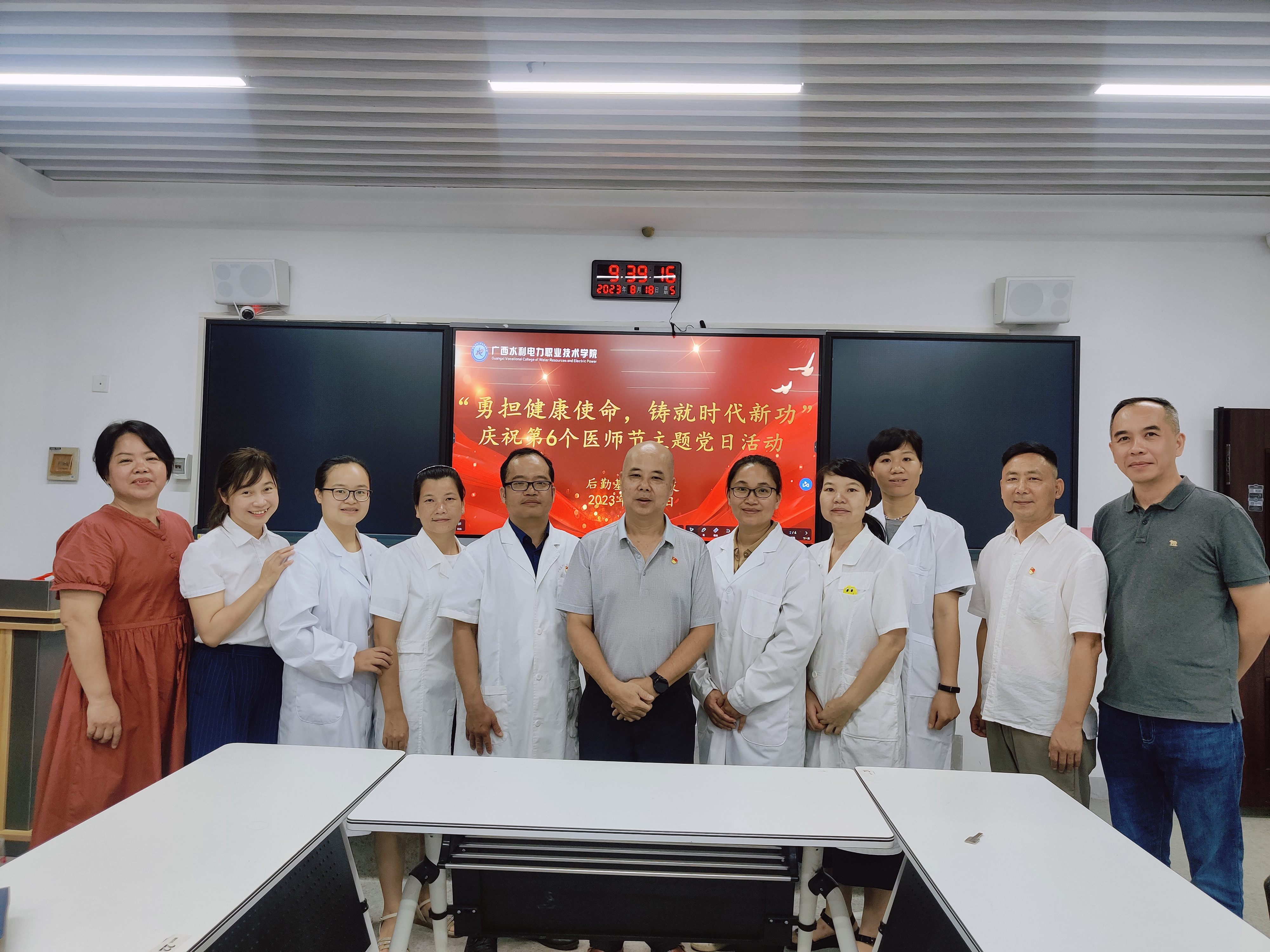 [本网讯]2023年8月19日是第六个中国医师节,也是党的二十大召开后的首个中国医师节。为树医师队伍正气,树优秀医师典型,增强医务人员对学校的认同感和归属感,18日上午,在中国医师节即将到来之际,后勤管理处(保卫处)组织卫生所的医师们在第四教学楼1-2教室举行“勇担健康使命,铸就时代新功”中国医师节慰问座谈会。学校副校长苏超,工会、后勤管理处(保卫处)负责人及卫生所的医师们参加此次座谈会。