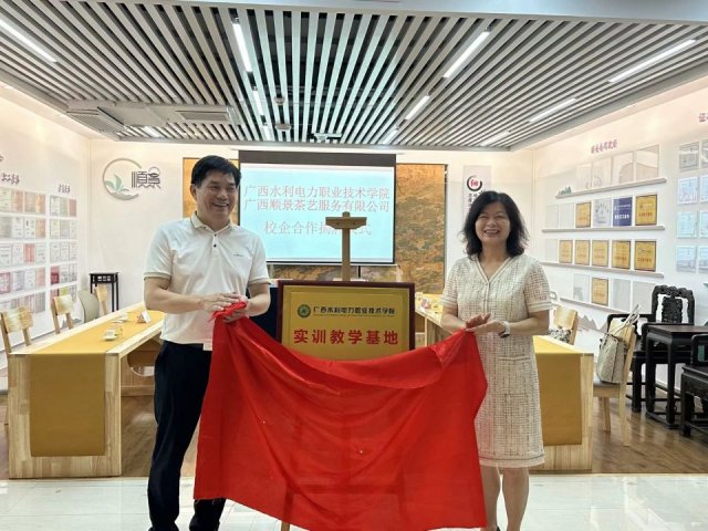 随后双方进行了隆重揭牌仪式,我们坚信,学校和广西顺景茶艺服务有限公司的校企合作,必将取得圆满成功。(供稿/经济管理学院)