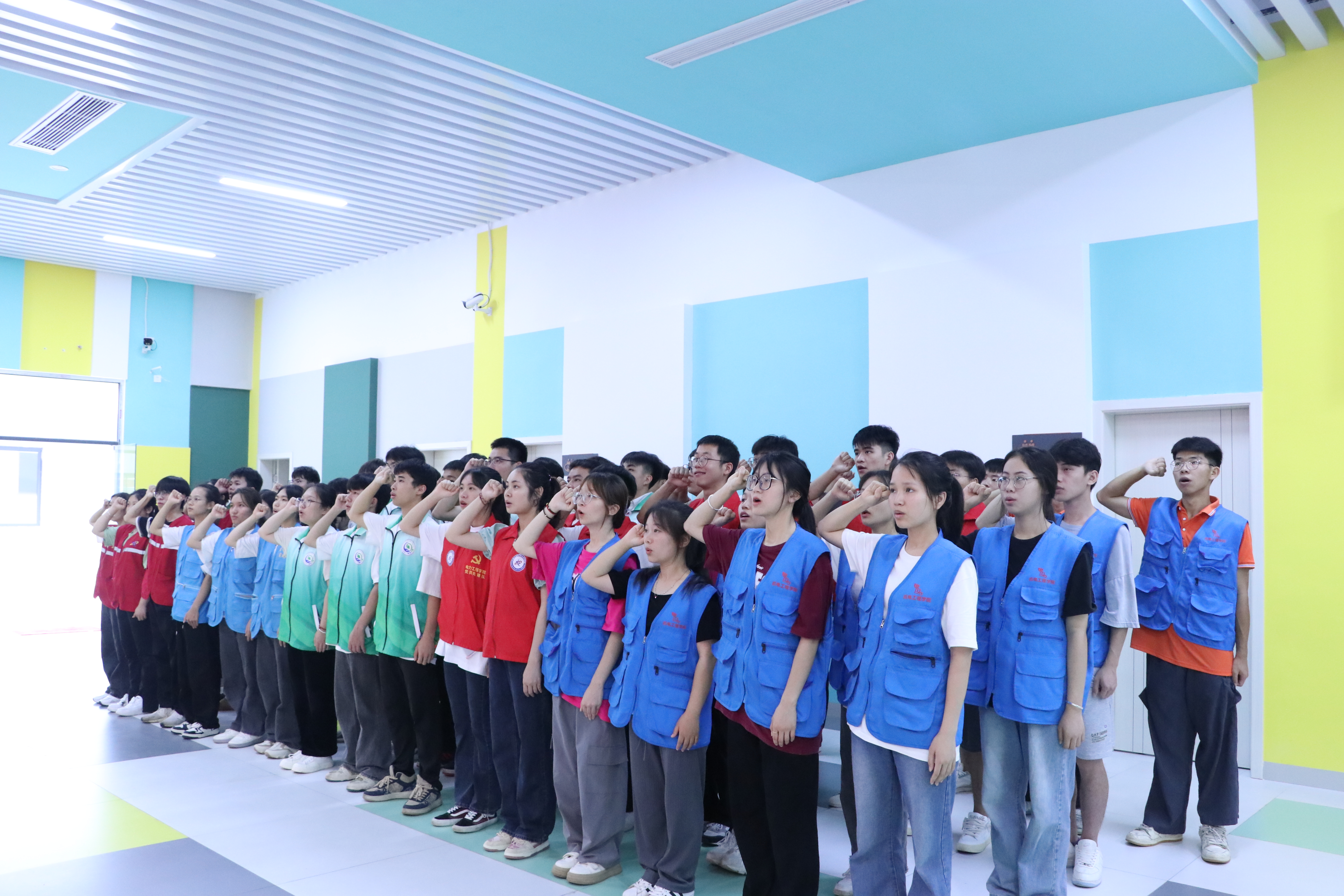 出征仪式在雄壮的歌声中拉开序幕。学校团委书记助理梁卉宣读了2023年学校暑期社会实践立项文件,鼓励广大青年躬身实践、深入基层,砥砺品格、增长本领,在磨炼提升的过程中,聚焦新时代新青年发展的趋向。“青水滴”实践队队长吴晓晗发言表示,各实践队将紧跟时代步伐,坚定不移跟党走,积极投身社会实践之中,在努力提升自我的同时不忘为社会发展贡献力量。随后,他带领即将出征的同学们作出庄严宣誓。