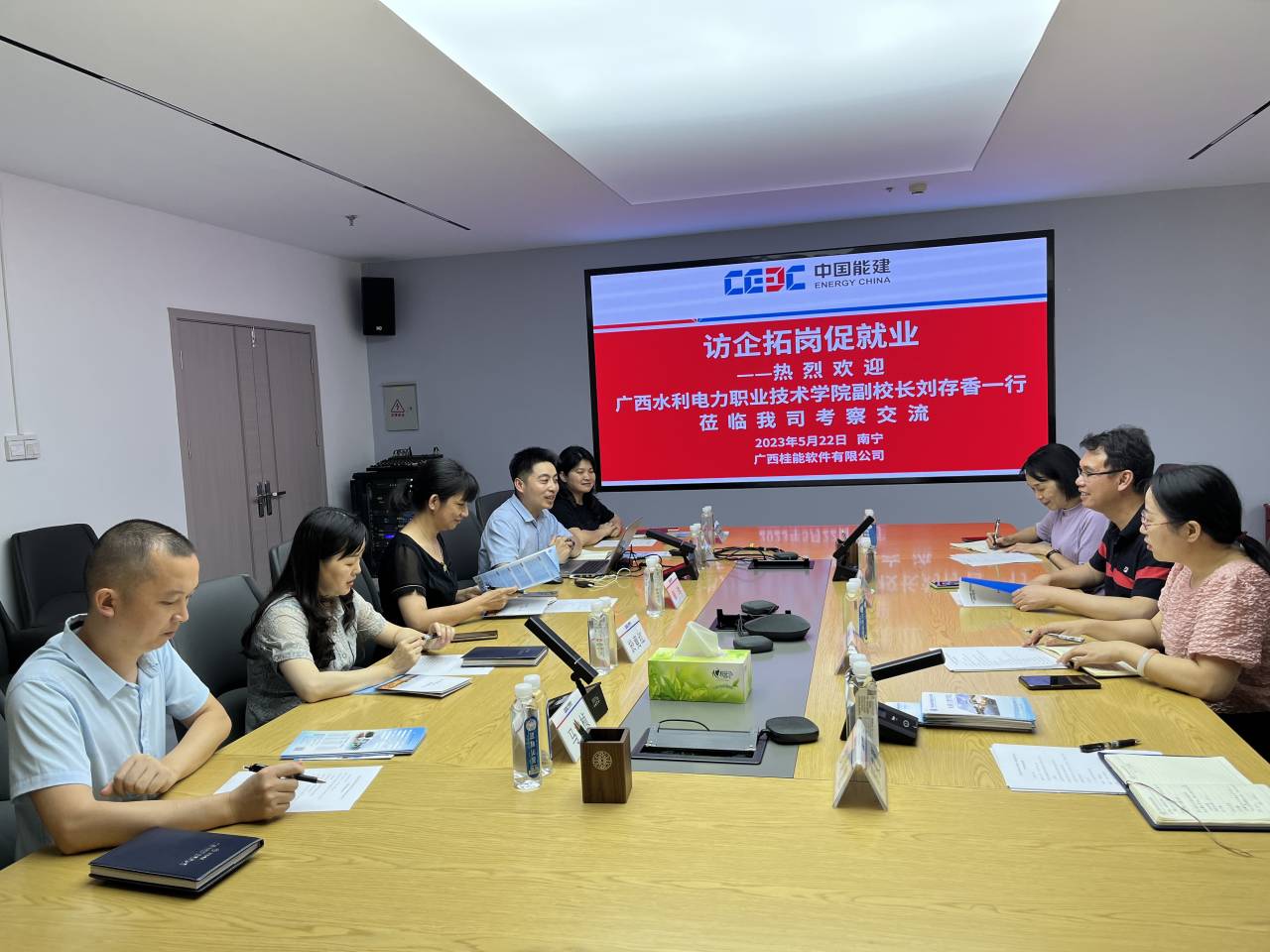 [本网讯]5月22日上午,刘存香副校长和水利工程学院相关领导、教师一行四人到广西桂能工程咨询集团有限公司、广西桂能软件有限公司进行走访交流。广西桂能工程咨询集团有限公司戴强总经理、广西桂能软件有限公司周洁副总经理等企业经营部、人力资源管理部的相关领导出席参加座谈。
