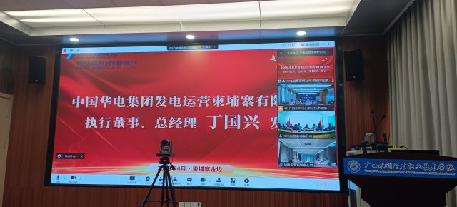 [本网讯]4月28日下午,学校与广西壮族自治区教育厅(以下简称:自治区教育厅)、中国华电集团发电运营柬埔寨公司(以下简称:华电运营柬埔寨公司)共同开展了以校企合作促进职业教育发展为主题的跨国线上线下调研座谈会。自治区教育厅副厅长李清先,学校李林校长、刘存香副校长,华电运营柬埔寨公司执行董事、总经理丁国兴、学校优秀毕业生代表、柬籍员工代表,以及来自自治区教育厅、学校和华电运营柬埔寨公司的相关职能部门领导出席了此次会议。会议由华电运营柬埔寨公司副总经理赵文亮主持。