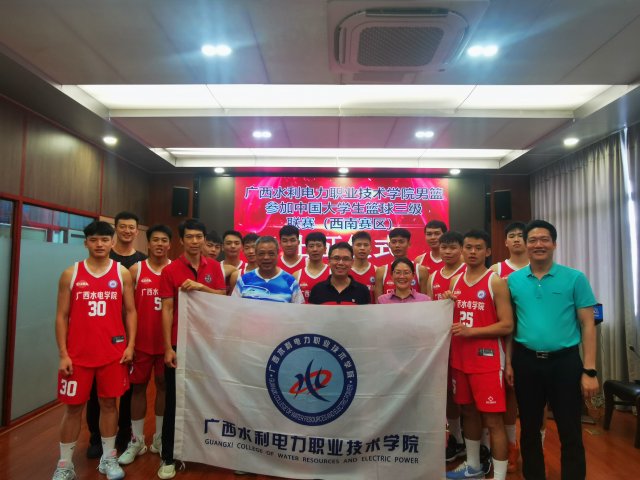[本网讯]激扬青春当奋楫,扬帆起航在今朝。在五四青年节这个特殊的日子里,学校男子篮球队在图书馆6楼国际交流中心会议室举行中国大学生篮球三级联赛(西南赛区)出征仪式,学校副校长刘存香、通识教育学院院长韦弘、教学督导黄勇标、带队教练及男篮全体队员参加。