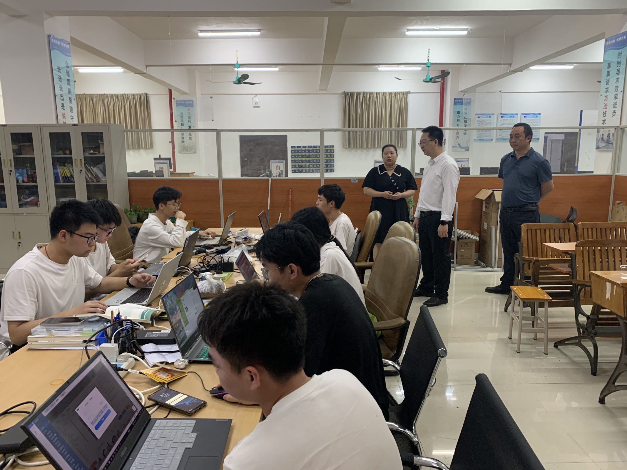 周涛副校长视察了各双创项目团队的备赛情况,认真听取各项目介绍,与备赛师生亲切交流,详细了解各参赛项目的备赛进展、备赛思路、存在困难等情况,并对参赛师生团队不畏困难、勇于创新、你追我赶的备赛劲头给予充分肯定。