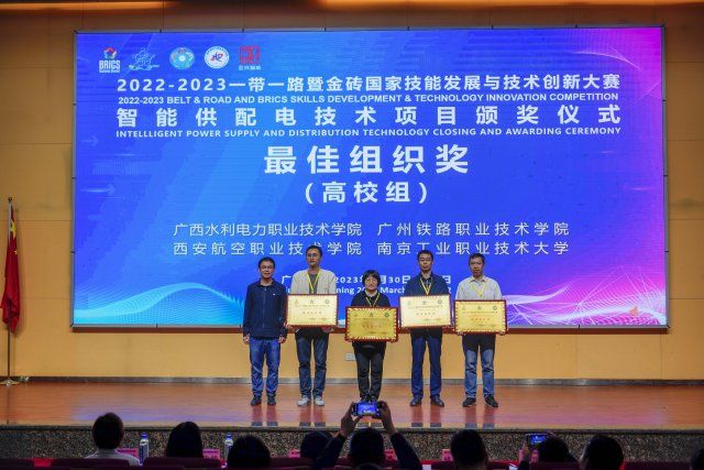 本次赛项共有国内44支队伍报名参赛,共颁发突出贡献奖2个、最佳组织奖5个、优秀组织奖9个,其中广西水利电力职业技术学院、西安亚成智能科技有限公司获得突出贡献奖;颁发“智能供配电技术”赛项一等奖4个、二等奖7个、三等奖11个、优秀奖14个,中职组一等奖1个、二等奖2个、三等奖2个、优秀奖3个,其中广西水利电力职业技术学院、广州铁路职业技术学院、西安航空职业技术学院、南京工业职业技术大学4支参赛队荣获高校组一等奖,百色市机电工程学校荣获中职组一等奖。学校徐庆锋、邱敏获得该赛项优秀指导教师奖。