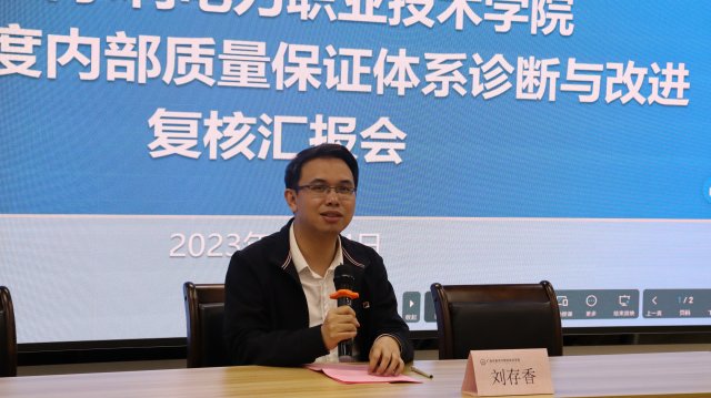 最后,学校副校长刘存香作总结讲话。他代表学校对专家们的辛勤工作、精准的把脉、合理的建议表示感谢。他表示将根据专家反馈建议,不断推进学校教学诊断与改进工作,完善内部质量保证体系;持续用好质量考核的“指挥棒”,促进诊改工作的提升;结合广西深化新时代教育评价改革教师和学生试点项目、广西高等职业院校教育教学工作审核评估实现诊改的多元化。
