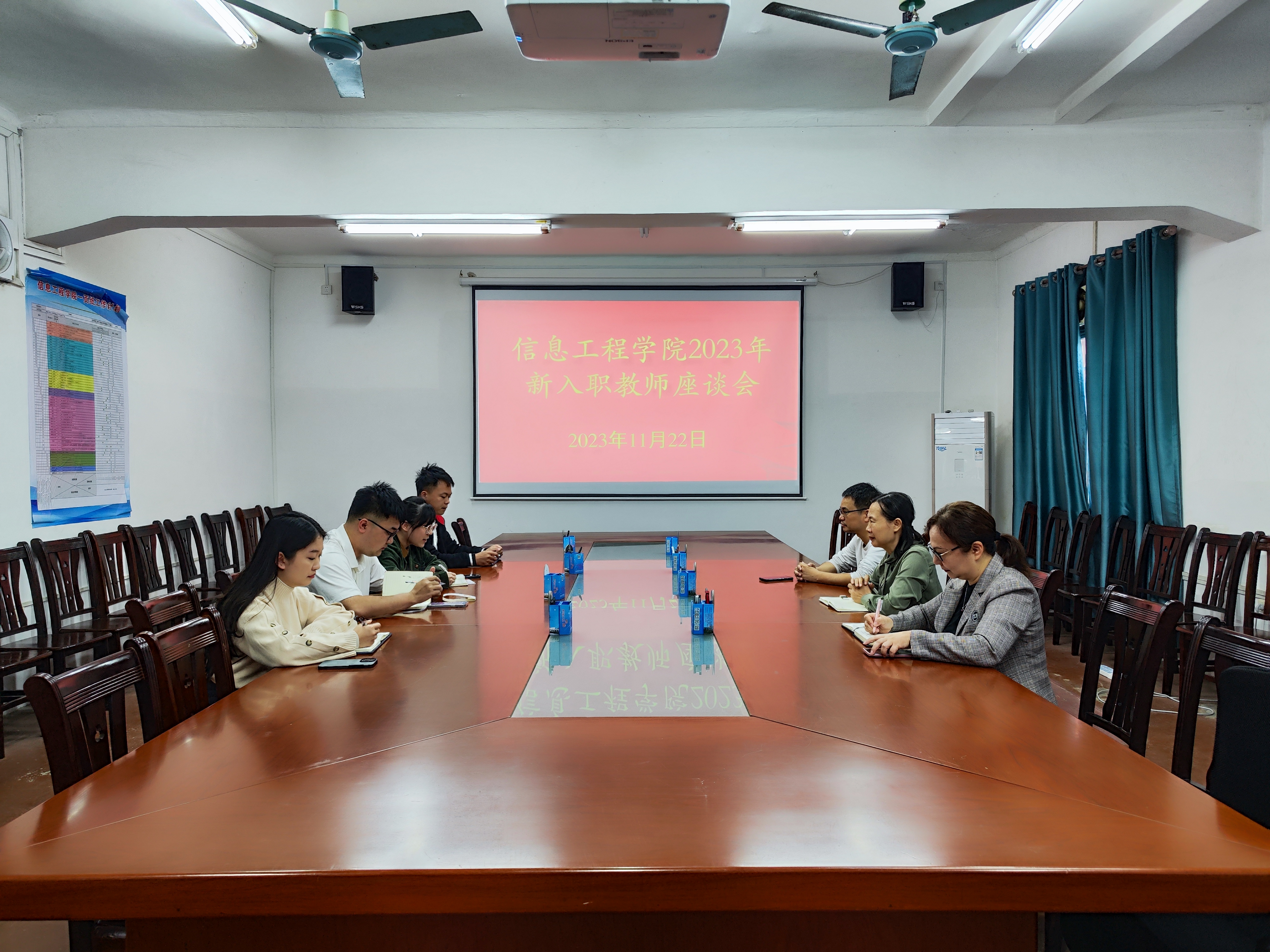 [本网讯]11月22日,信息工程学院在长堽校区信息楼四楼会议室开展新入职教师座谈会。信息工程学院院长宁爱民、党总支书记张志秀、副院长钟文基、副院长禤健丽及新入职教师于欣媛、周顺、孙菲浓、杨仕铭参加了会议。
