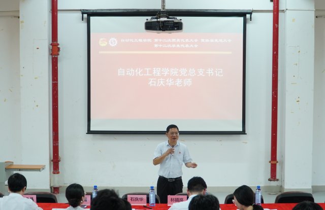 之后大会按照议程有条不紊地进行,全体团学成员在讲台上热血澎湃,青春洋溢地做竞选发言、计票。最后石庆华书记对新当选的学生干部表示热烈地祝贺,并对新任学生干部进行了教育培训。他寄语新一届学生干部:一是有觉悟,创造属于自己的历史。要有吃苦的准备,每日躬身自省,要通过改革创新,来增强团学组织活力;二是要有行动,不断提高执行力领导力。要先做学员再做教员,熟悉业务流程,掌握过硬本领,加强学风建设,以硬核实力,过硬作风赢得青年的认同。三是听党话跟党走,心中始终装着青年学生。要积极思考,科学工作,做青年学生的贴心人,成为青年学生想的起、找得到、靠得住的学生组织。
