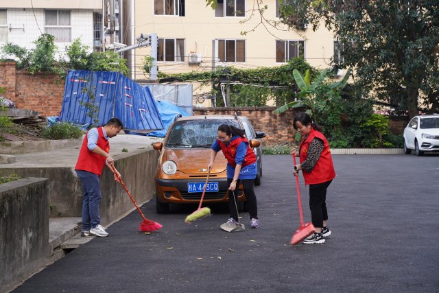 清洁社区活动中,党员同志和青年志愿者们对路边绿化带里难以清洁的顽固角落进行了彻底的清扫,对各楼栋墙上的小广告进行了清理,社区卫生环境得到进一步提升。