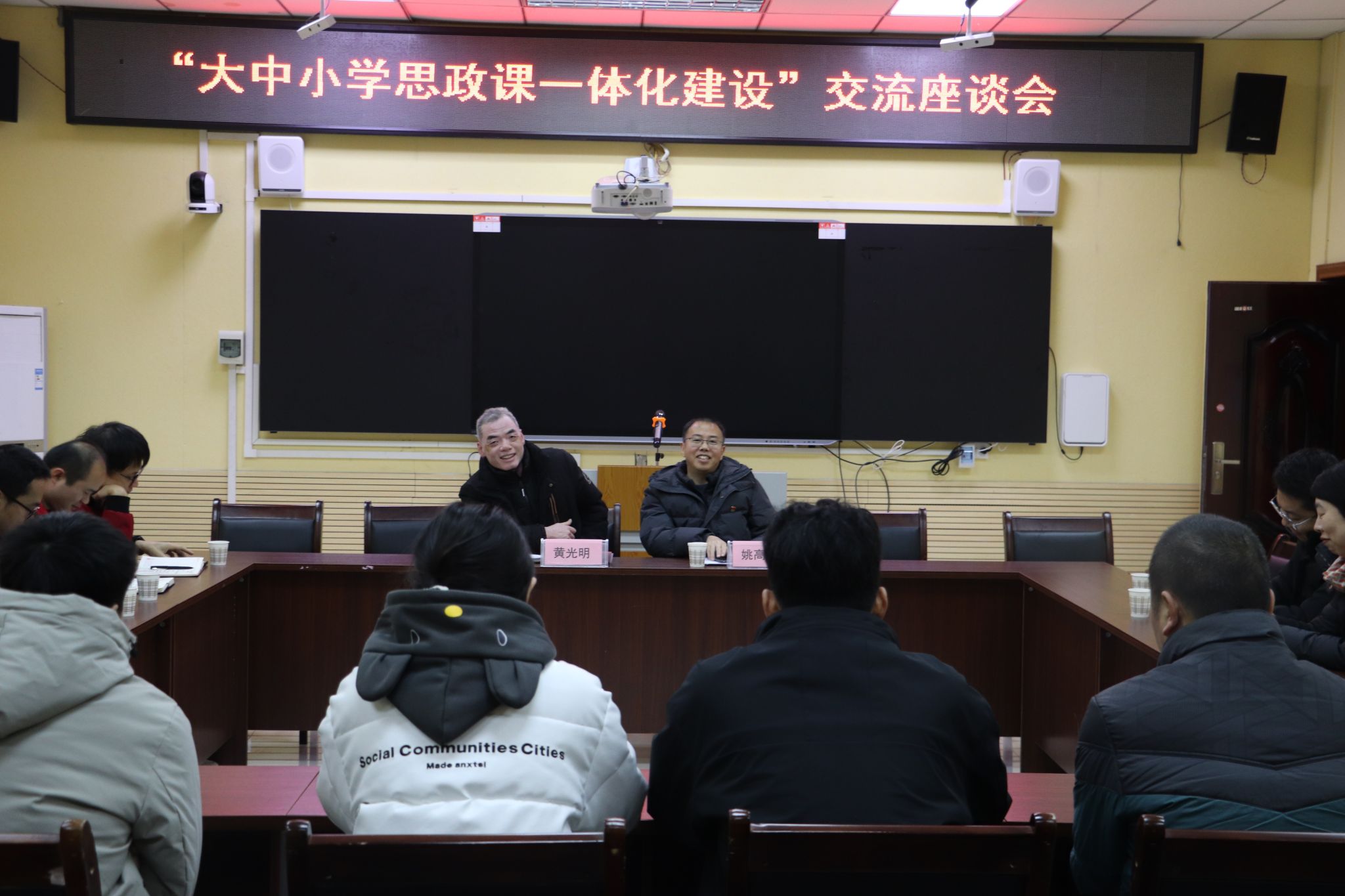 [本网讯]为贯彻落实教育部办公厅《关于开展大中小学思政课一体化共同体建设的通知》(教社科厅函〔2022〕49号)和自治区党委教育工委、教育厅《关于加强全区大中小学思想政治理论课一体化建设的工作方案》(桂教工委宣〔2023〕3号)等有关文件精神,提升马克思主义学院关于大中小学思政课一体化的建设水平,增进了解学习本区中等职业学校的经验做法。1月23日上午,马克思主义学院副院长姚高翔带领部分骨干教师到天等县职业技术学校开展大中小学思政课一体化建设交流座谈会,天等县职业技术学校副校长黄光明等20余人参加座谈。