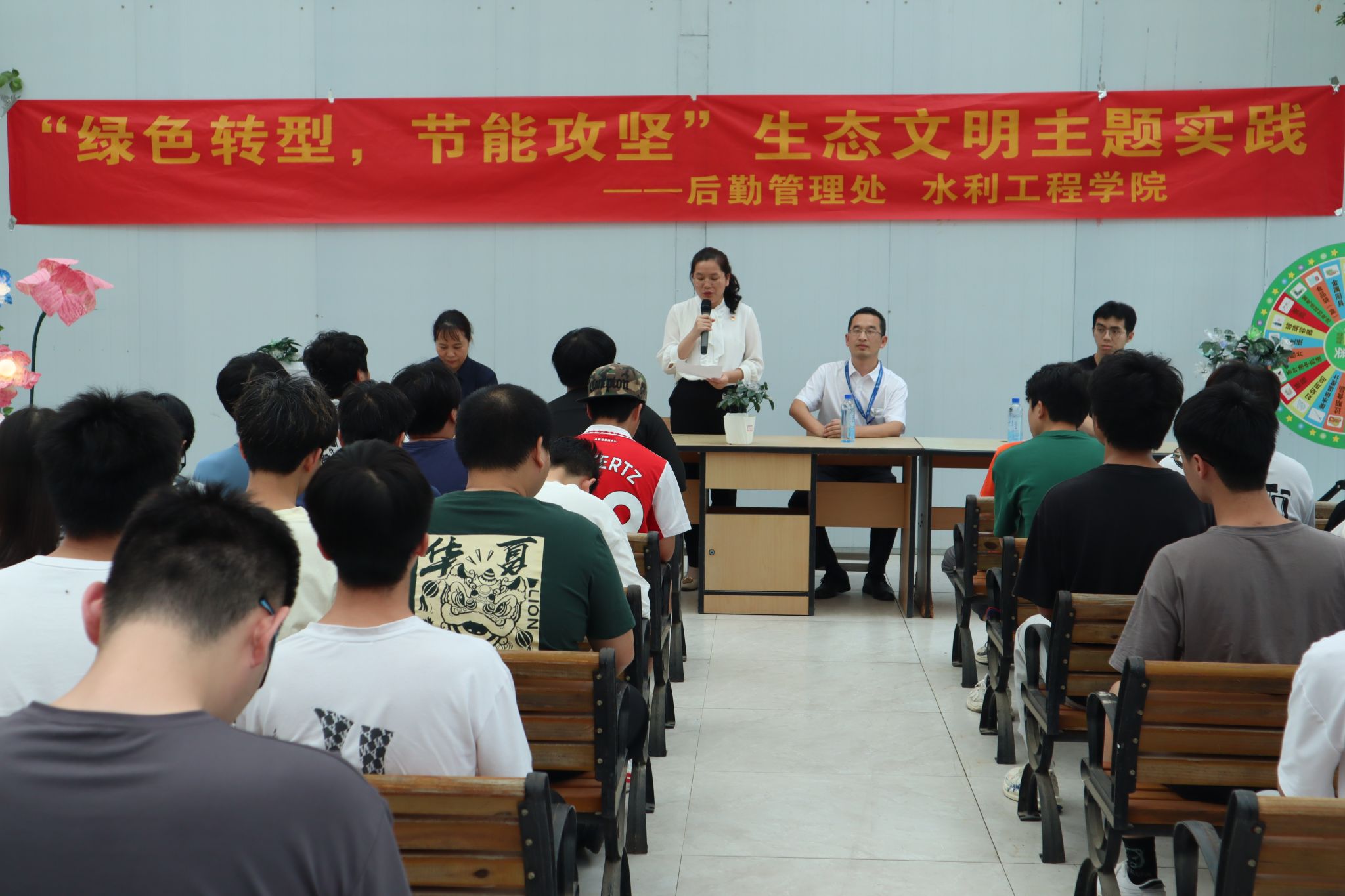 [本网讯]在2024年全国节能宣传周期间,为倡导节约习惯,提高全校师生的环保节能意识。5月17日下午,水利工程学院联合后勤管理处(保卫处)主办、节水节能行动协会承办的“绿色转型,节能攻坚”生态文明实践主题活动在凤凰山大创园开幕。水利工程学院党总支书记班兰美、副院长张宪明,节水节能行动协会指导老师吴萍、后勤管理处(保卫处)室覃振栩老师和全校200余名同学参加本次活动。