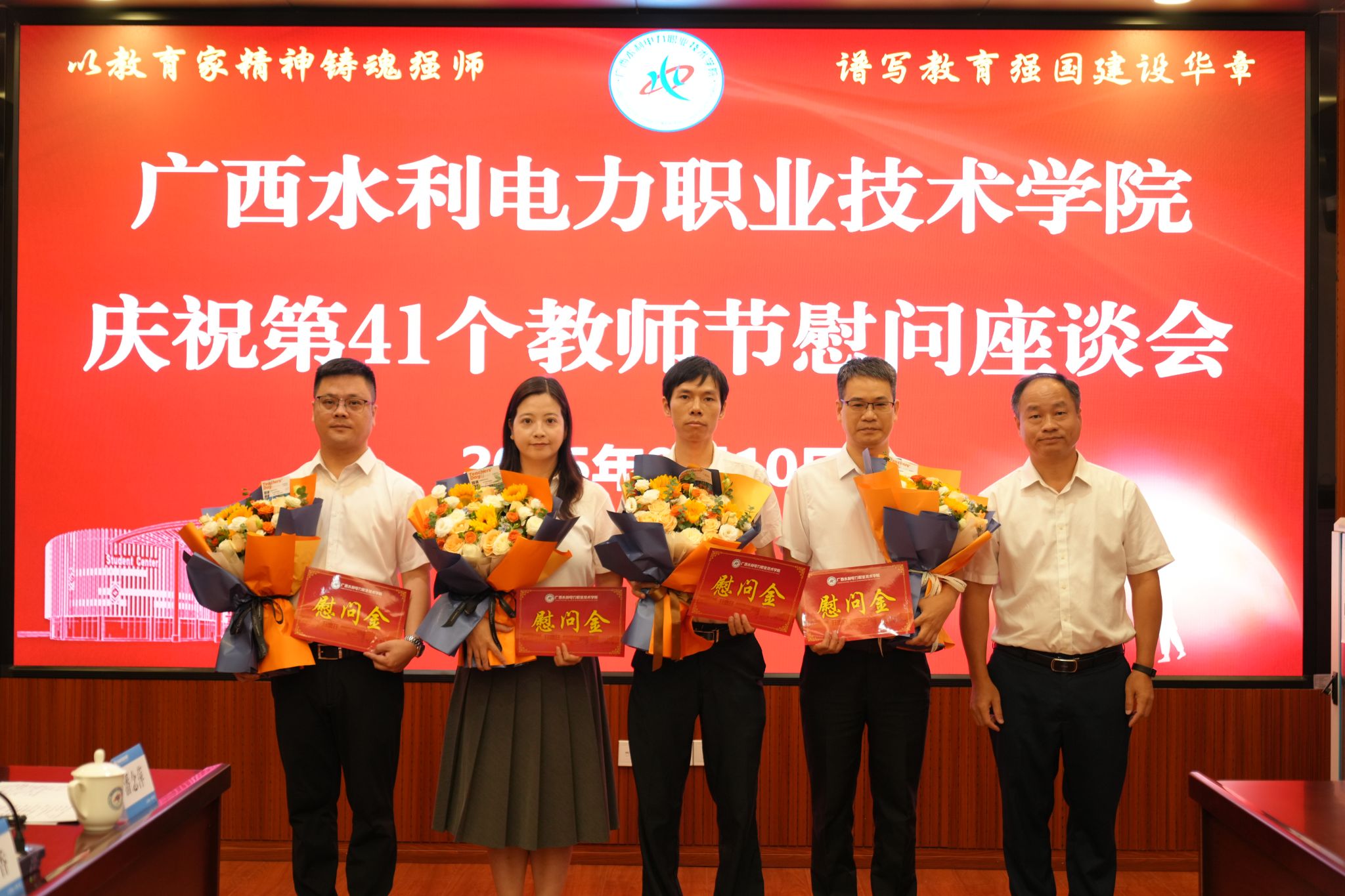 会上,谭德伦对自治区职业教育教师教学创新团队负责人、信息工程学院副院长钟文基,中国国际大学生创新大赛国赛金奖指导老师代表、发展规划与科技开发处创新创业中心主任彭情,以及2025年世界职业院校技能大赛总决赛争夺赛金奖指导老师代表、水利工程学院教师陆晓玮和土木建筑工程学院副院长黄文杰进行了慰问,鼓励他们继续发挥示范引领作用,为培养更多水利高技术技能人才贡献力量。