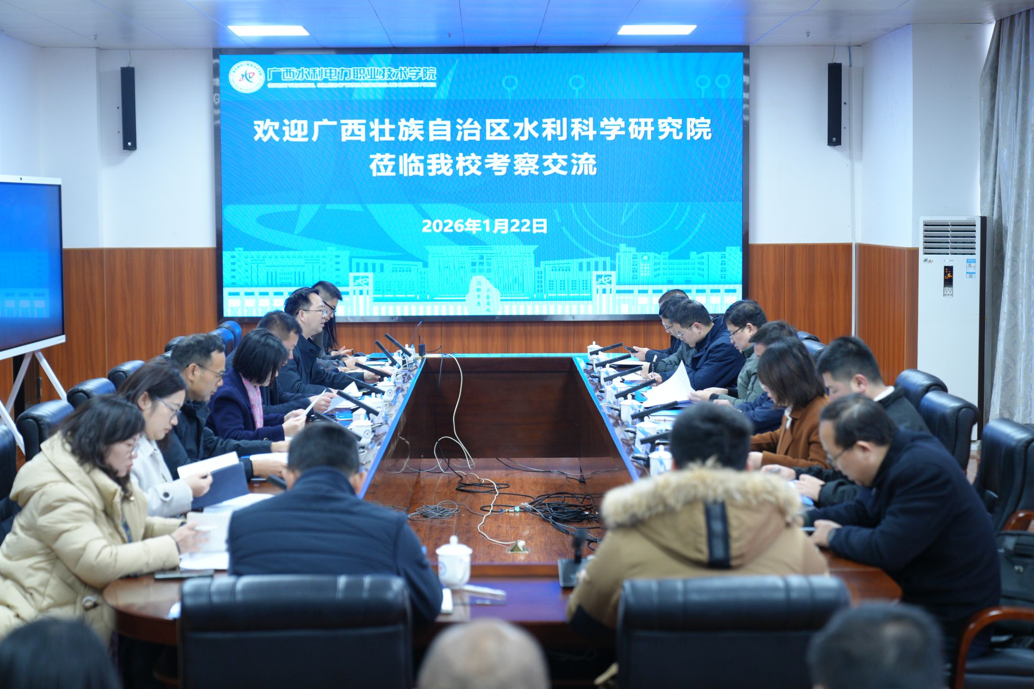 [本网讯]1月22日上午,广西壮族自治区水利科学研究院院长黄凯一行10人到我校里建校区开展考察交流,学校党委书记李林、副校长周涛、副校长吴美琼陪同参加交流活动。