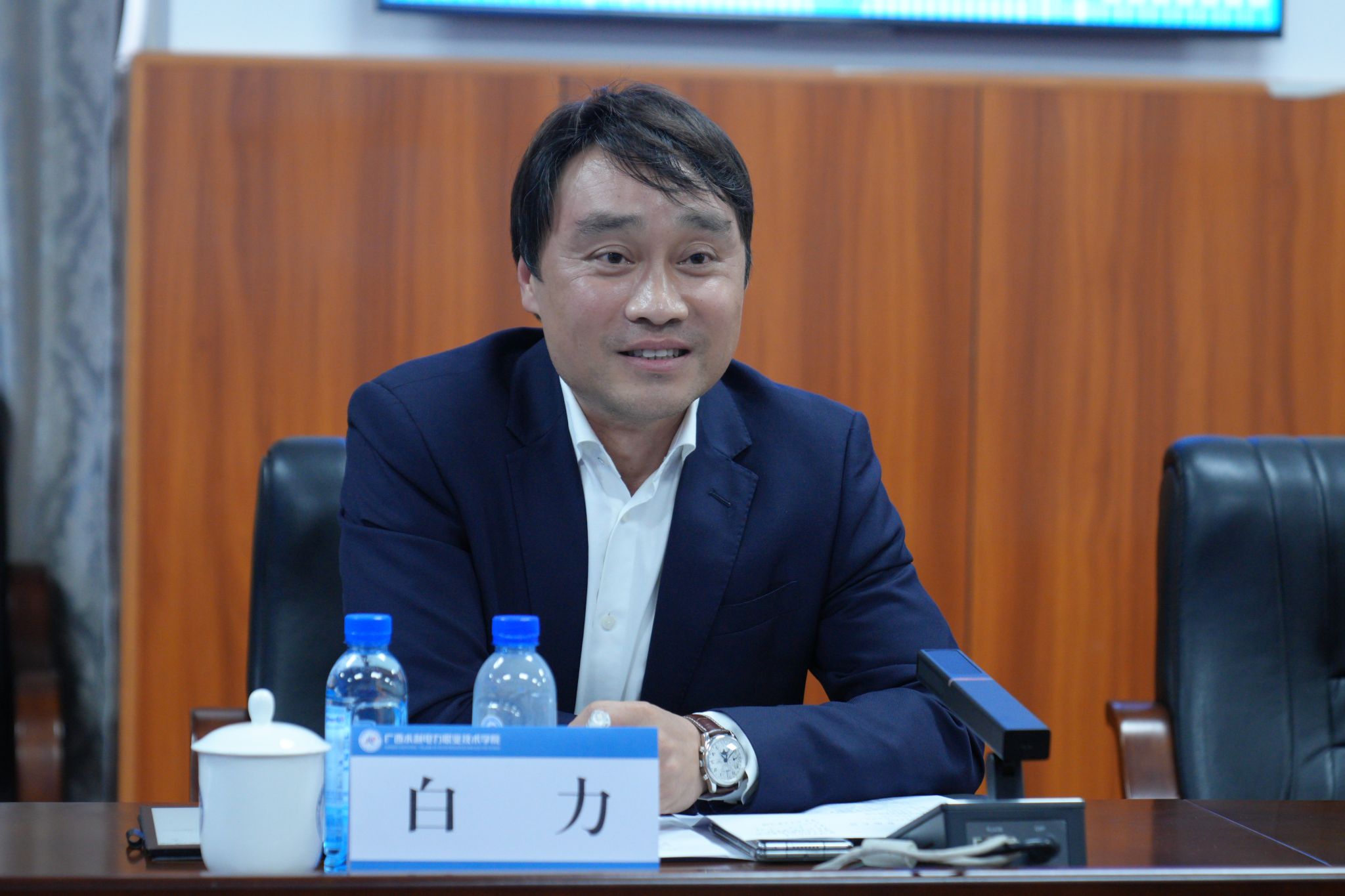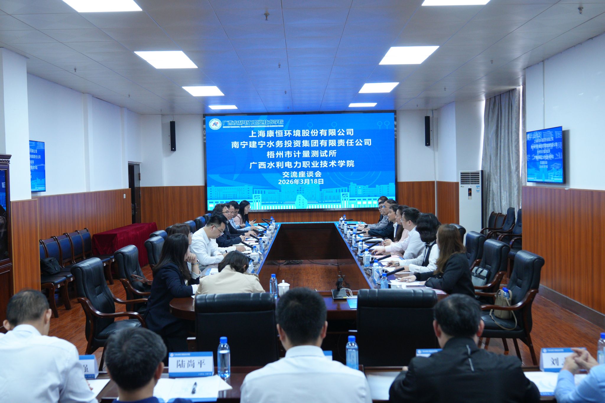 上海康恒环境股份有限公司研究院、广西绿城环境发展集团有限责任公司办公室(董事会办公室)、梧州市计量测试所等单位负责人,自治区水利厅人事处,学校党委组织部(人事处)、党委(学院)办公室、发展规划与科技开发处、招生就业处、水利工程学院、电力工程学院、机电工程学院、土木建筑工程学院、自动化工程学院相关负责人参与调研座谈。(何科宇/文 李浩/图)