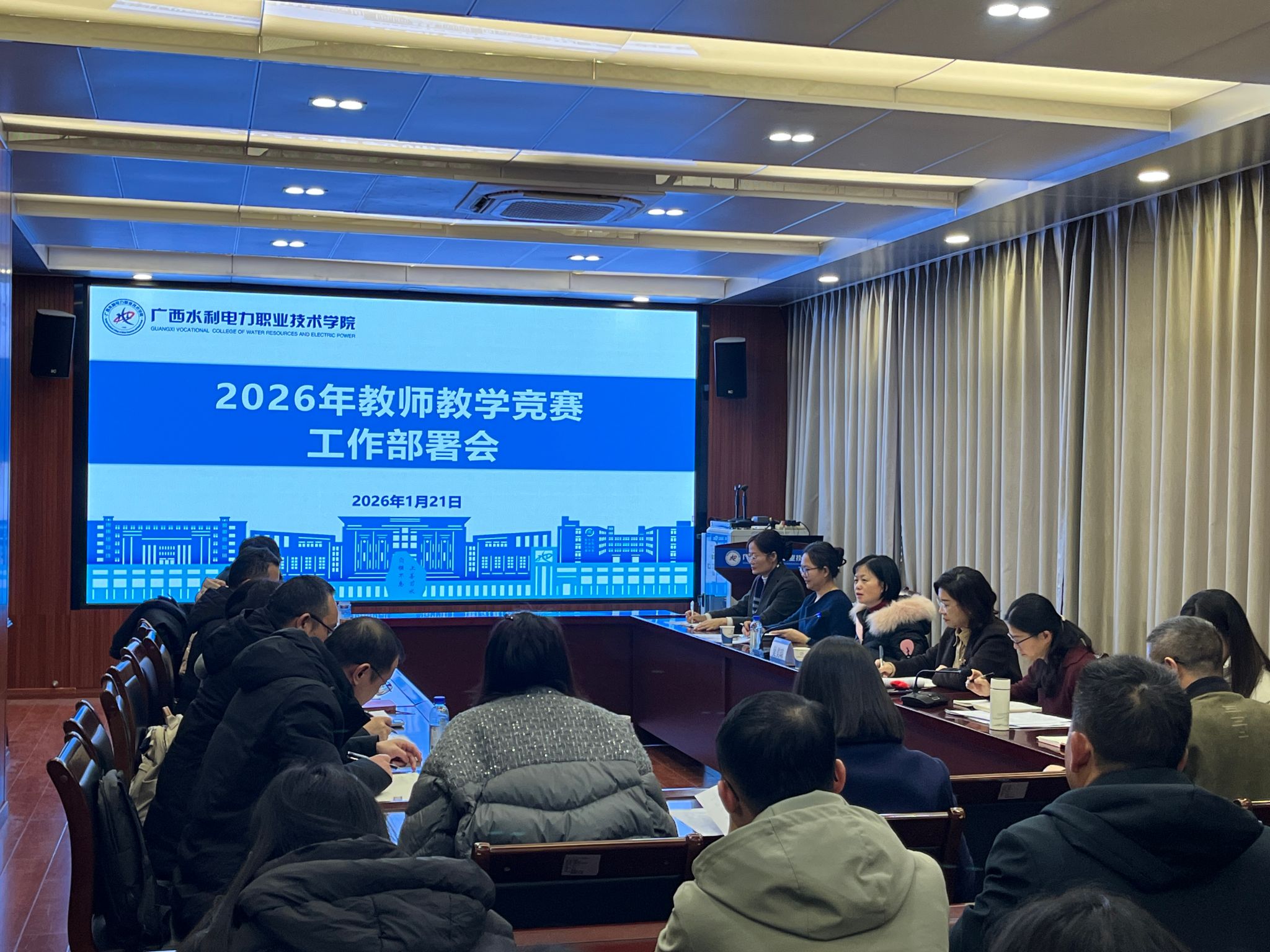 本次会议旨在深化教育教学改革,全面总结教师教学技能大赛经验、交流备赛心得,并为学校全年的教师教学竞赛指明方向。