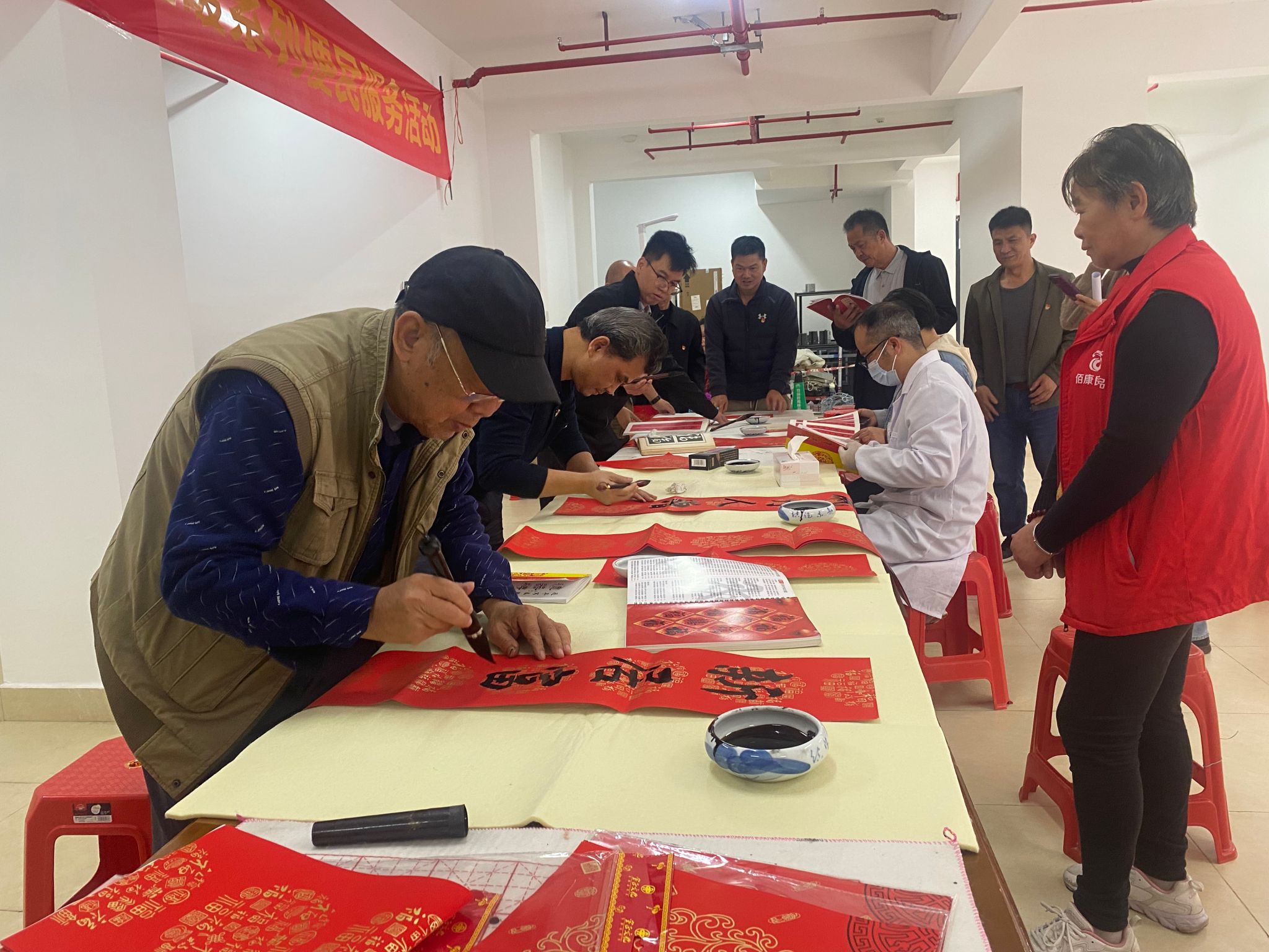 活动现场,学校书法爱好者现场挥毫,一幅幅吉祥春联、一个个喜庆“福”字跃然纸上,承载着新春期盼,深受群众喜爱。此外,卫生所医护人员还开展健康义诊,测量血压、检测血糖,解答慢性病疑问,普及养生知识,提供便捷专业医疗服务。水工实训楼前,后勤二党支部联合车队开展车辆清洗、检修服务,细致做好胎压检测、机油检查等,为教职工出行安全保驾护航。