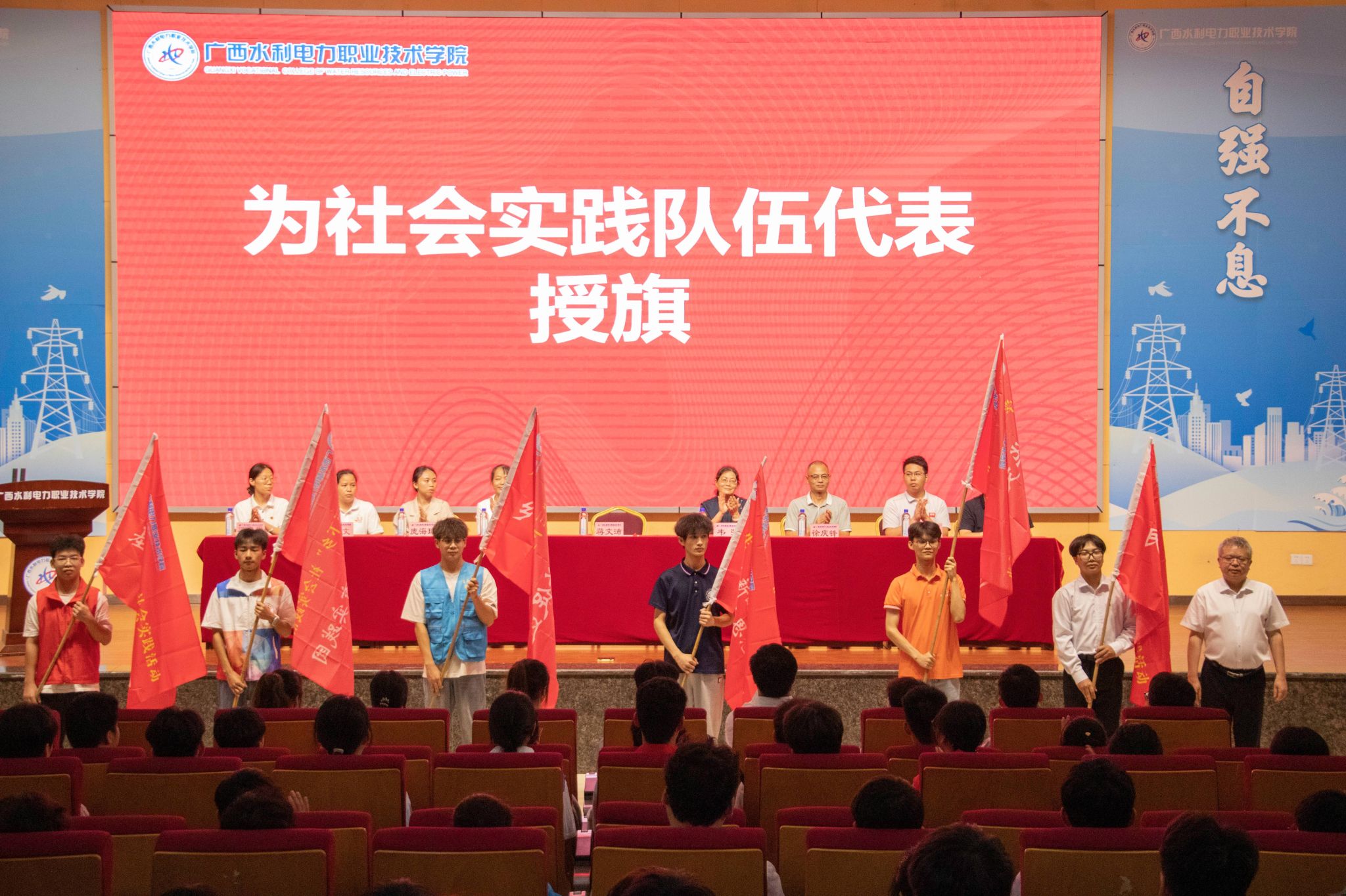通识教育学院院长韦弘、电力工程学院副院长徐庆锋、二级学院团委书记及各实践团师生代表200余人参加出征仪式。(伍思嫒/文 罗振佳等/图)