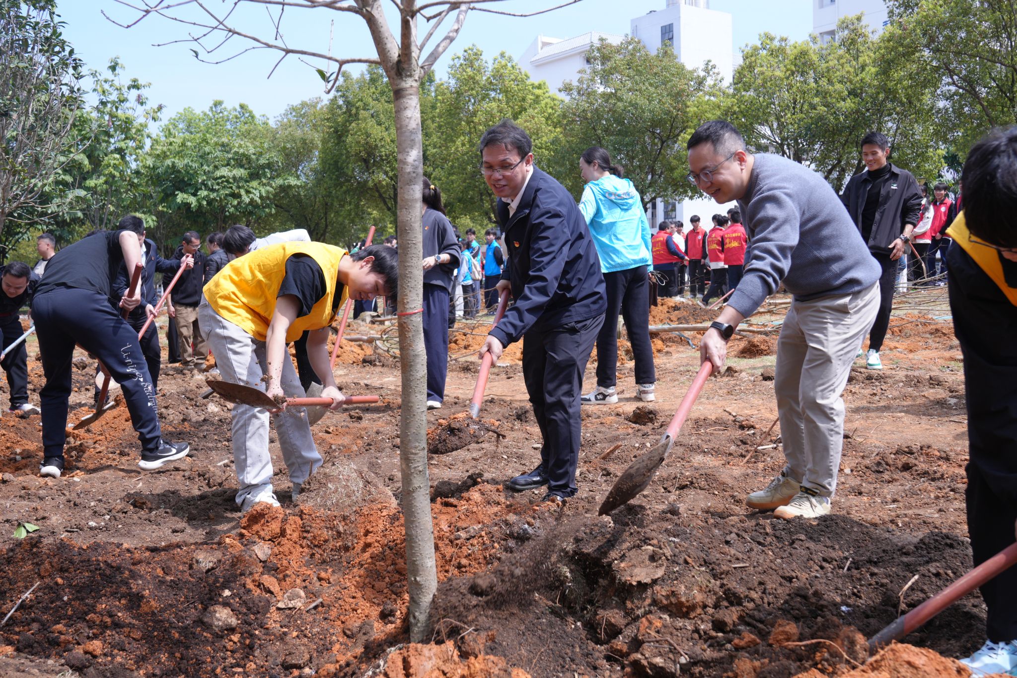 [本网讯]春回大地,万象更新。3月12日,在第48个植树节到来之际,学校组织开展2026年植树节“绿动‘十五五’,共筑生态梦”主题系列活动。学校党委书记李林、校长刘存香、副校长黄海滨到里建校区自动化工程学院实训楼前,与师生代表共同参加“植此青绿,共赴新途”主题集中植树活动,以躬身实践为“十五五”开局之年的校园播撒新绿,以生态校园建设成果向建校70周年献礼。