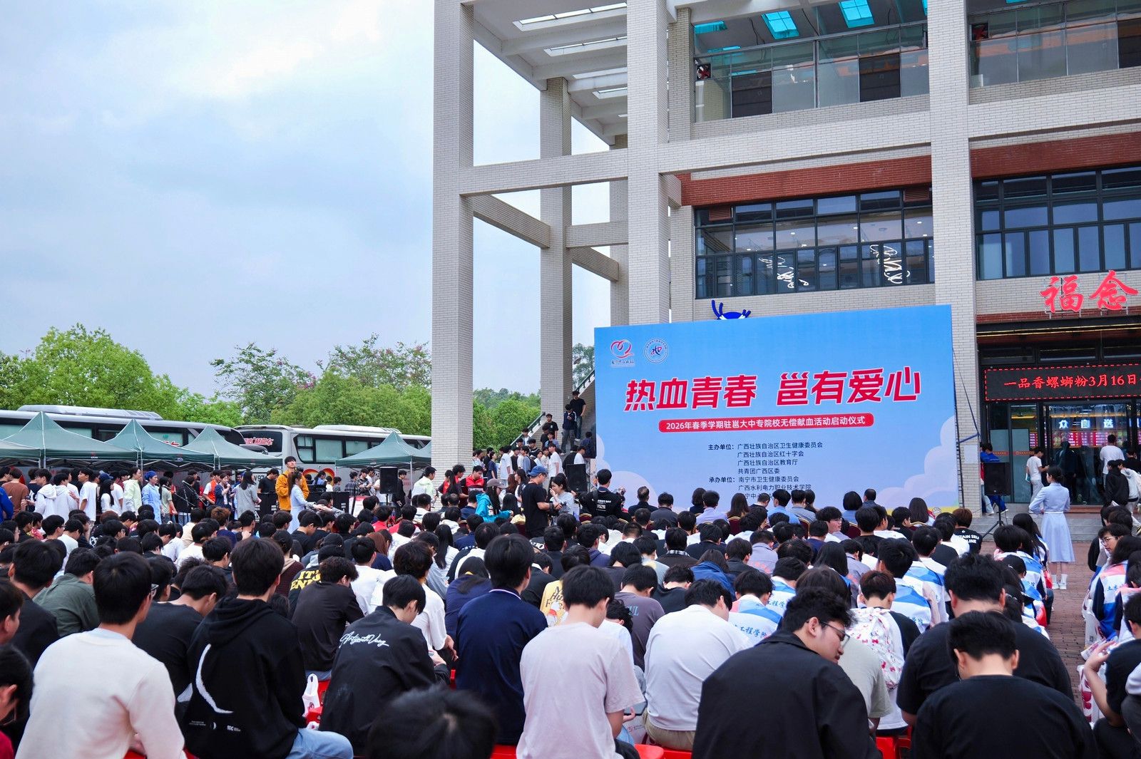 [本网讯]3月20日,由自治区卫生健康委、红十字会、教育厅、共青团广西区委联合主办,南宁市卫生健康委、我校及南宁中心血站共同承办的“热血青春 邕有爱心”2026年春季学期驻邕大中专院校无偿献血活动在我校里建校区顺利举行。学校党委副书记莫海燕、副校长黄海滨出席活动,与驻邕高校师生代表共300余人齐聚一堂,共启新学期爱心篇章。