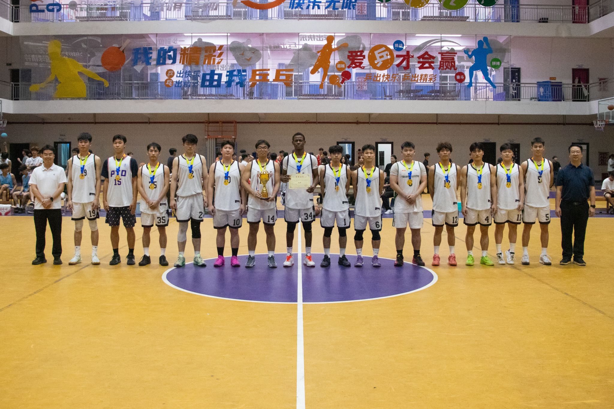 学校副校长周涛为男子组、女子组“最有价值球员“颁奖并合影留念