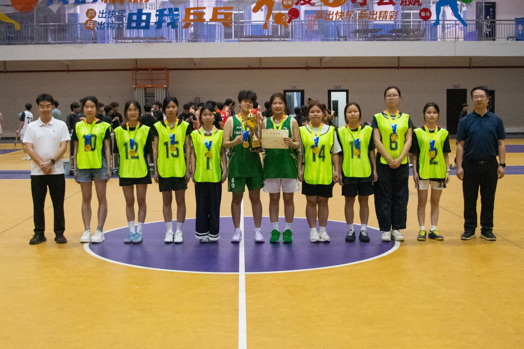经过激烈角逐,电力工程学院一队斩获男子组冠军,机电工程学院一队获男子组亚军;女子组比赛中,电力工程学院女队摘得桂冠,土木建筑工程学院女队荣获亚军。颁奖仪式上,周涛为男女组冠军及最有价值球员(MVP)颁发奖杯与证书,其余奖项由到场领导嘉宾依次颁发。