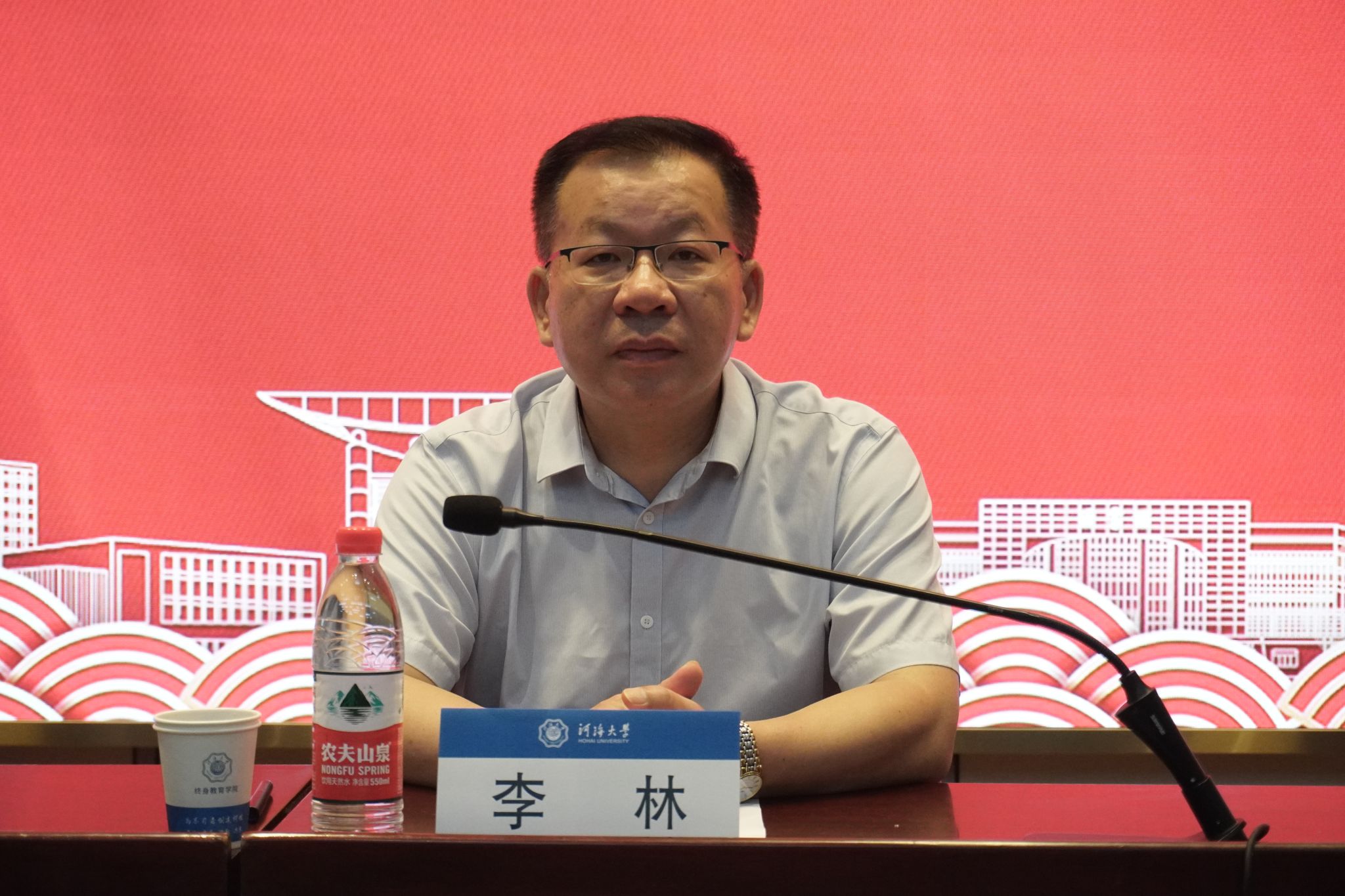 李林代表学校对培训班的开班表示祝贺,并对河海大学的大力支持表示衷心感谢。他指出,广西基层水利人才“雏鹰”培训计划旨在为广西水利基层培育储备一批素质精良、学识渊博、阅历丰富的技术干部后备力量,促进广西水利基层人才的高位均衡发展。河海大学终身教育学院为同学们量身定制的具有系统性、前沿性及实用性的访学研修方案,有助于同学们掌握智慧水利、现代水利,适应社会发展,提高理论素养和管理水平。他对同学们提出四点希望:珍惜学习机会,端正学习态度,坚持学以致用,严格遵守纪律。他强调,大家要在今后的工作中充分注重实践,争做新时代水利新人。