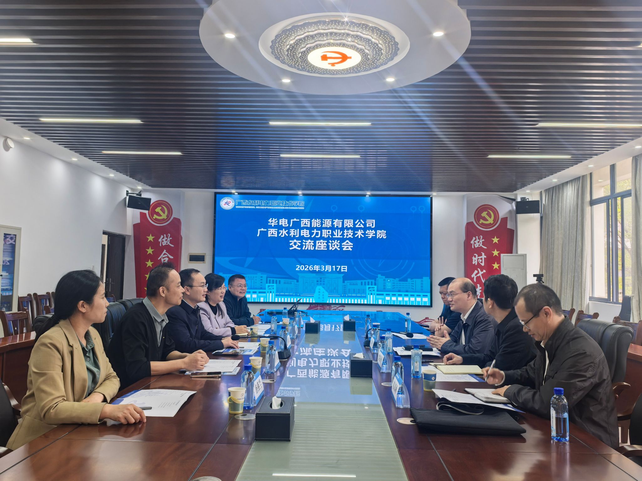 座谈会上,黄海滨对华电广西能源有限公司到访表示热烈欢迎。他指出,学校深耕电力、水利等特色专业建设多年,为区内外能源电力行业输送了大量高素质技术技能人才。希望以此次交流为纽带,双方在校企共建实训基地、学生实习就业等方面深化合作。