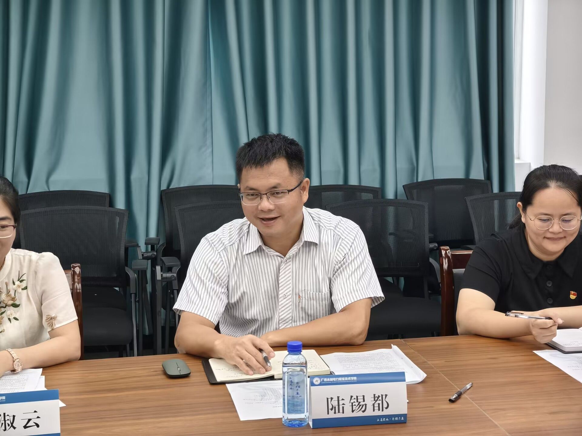 [本网讯]为探索职业教育领域思政课学段有效衔接的现实路径,7月3日上午,学校在长堽校区马克思主义学院会议室召开中高职思政课一体化建设研讨会。学校副校长蒋文沛、南宁市第一职业技术学校副校长陆锡都出席会议。