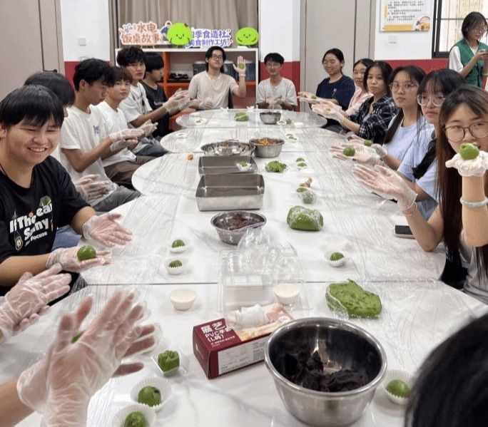 活动现场,处处洋溢着温馨和谐的氛围。同学们围坐在一起,从揉制青团皮,到包裹喜欢的馅料,再到捏制成圆润饱满的青团,大家相互协助,欢声笑语在美食制作间里不断回荡。在制作青团的过程中,同学们不仅体验到了动手协作的乐趣,更感受到了中华传统文化的深厚底蕴。指尖的细腻操作、彼此的暖心互动,让原本略显紧张的校园生活多了一份舒缓与温情,也让同学们放松身心、舒缓压力,在制作过程中获得成就感,提升自我认同感。