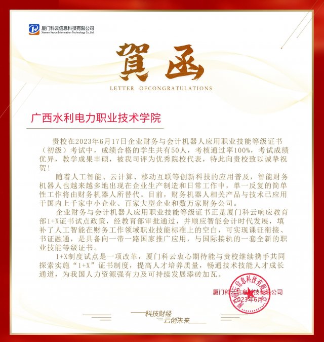 [本网讯]为了贯彻落实习近平总书记关于教育的重要论述,以及“1+X”证书试点制度文件精神,2023年6月17日,经济管理学院组织财会专业50名学生参加“1+X”《企业财务与会计机器人应用职业技能等级证书(初级)》 认证考试。6月19日经成绩公示,我院学生考证通过率100%。