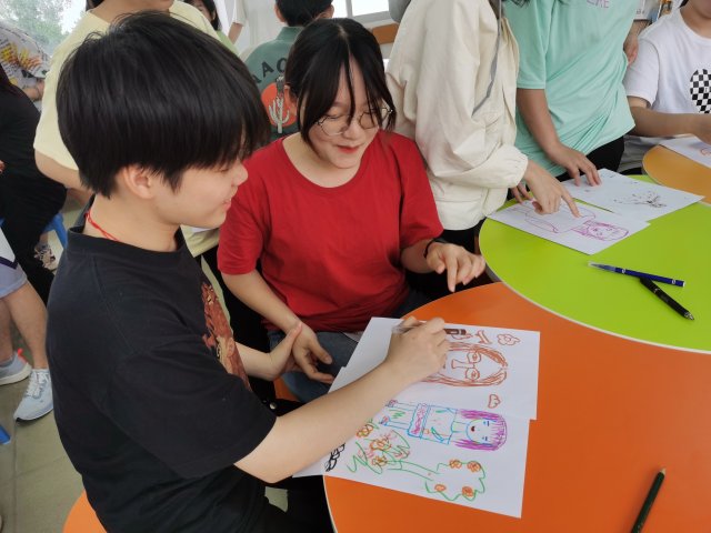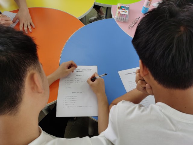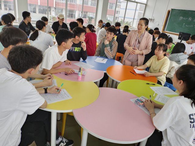 活动开始,首先是破冰活动——“有缘千里来相会”,通过游戏的方式选出人员,进行快乐分享,学生讲述一件快乐的事情把快乐分享给大家,同时也促进同学之间的相互认识、相互了解。接着,在冯老师的引导下,每一位学生完成自我画像,并且用图画的方式画出自身的三个优点和一个缺点,进行相互间的分享,现场活动氛围热烈,通过此项目学生们能更好地了解认识自己,从分享中获得愉悦感。经过小组建队后,进入了深层次的练习活动,在“天生我才、让我自豪”环节,每一位同学填写小学至大学期间1-2件不同的引以为豪、引以为荣的积极事件,再进行分享交流,帮助学生获取积极正向情绪,关注优势,了解自我;在“理想、专业知多少”环节,促进学生进行生涯探索,了解适合自己的职业、行业及其特点;在“目标金字塔”环节,协助学生进行生涯计划 、尝试规划个人的生涯发展。