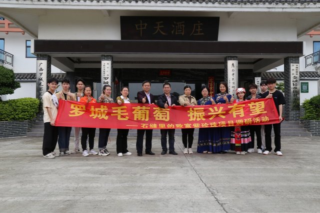 “石缝里的致富紫珍珠—广西罗城山野毛葡萄”调研组到广西大益生态食品有限公司、广西锦农电子商务有限责任公司、广西罗城东门四把毛葡萄种植基地中天酒庄等单位开展实地调研。主要目的是进一步了解罗城毛葡萄产业链发展情况,为“石缝里的致富紫珍珠—广西罗城山野毛葡萄”项目提供更多第一手资料,同时助力罗城仫佬族自治县的乡村振兴。师生与相关负责人了解目前毛葡萄种植、加工、深加工和产品销售等情况,了解企业在毛葡萄产业链上遇到的问题与困境等。相关单位负责人也对本项目提出宝贵意见与建议。