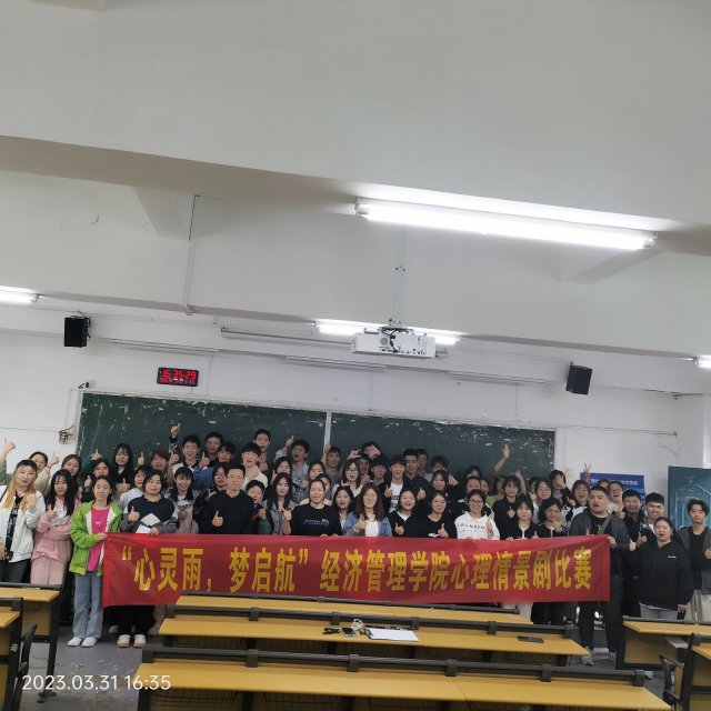 [本网讯]为进一步推进大学生心理健康教育工作,提高大学生的心理健康水平,优化学生的心理素质,充分发挥心理情景剧的育人作用,3月31日,经济管理学院在长堽校区第一教学楼1-6阶梯教室举行了“心灵雨·梦启航”第五届心理情景剧比赛初赛。本次比赛由学院心理辅导站主办,心理辅导站站长冯文、学院团委副书记崔庆将、辅导员祁拯老师担任初赛评委,2021、2022级学生参与其中。