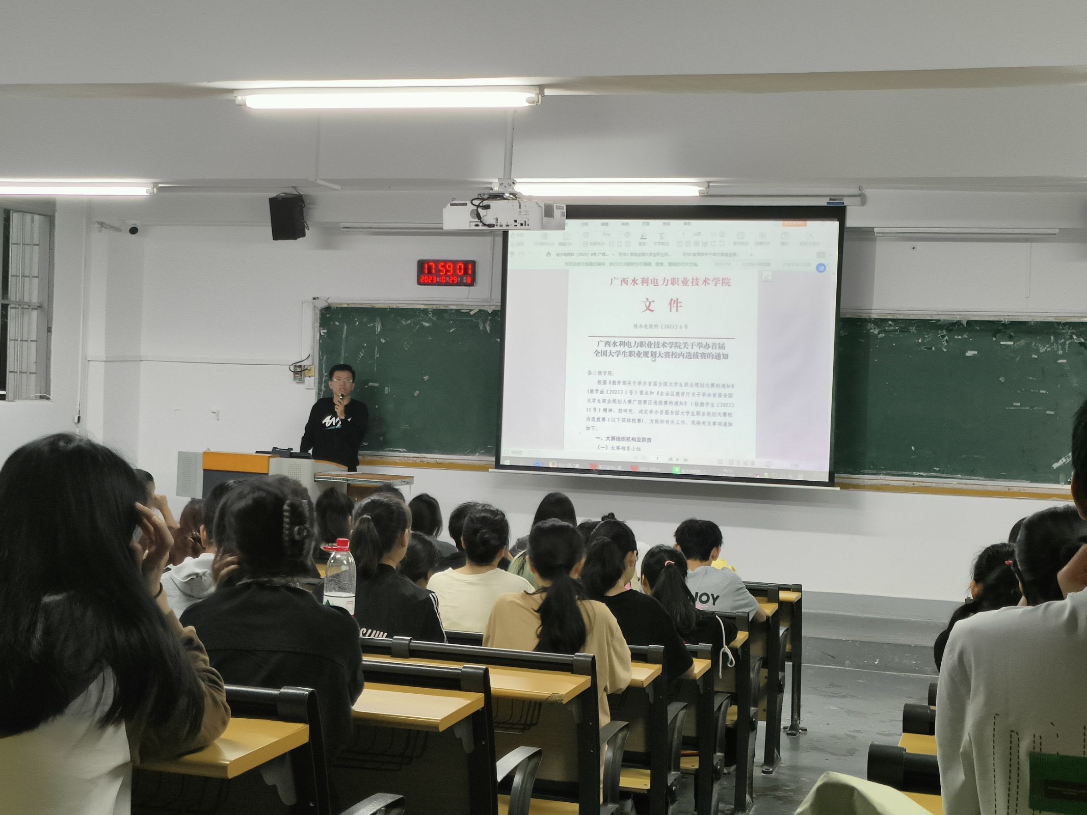 根据学校《关于举办首届全国大学生职业规划大赛校内选拔赛的通知》桂水电院科(〔2023〕6号)的要求,10月29日晚,经济管理学院通过主题班会形式开展首届全国大学生职业规划大赛宣传动员会。由于21级学生在校外实习,经济管理学院全体辅导员通过线上线下的方式,总共召开10余场累计1000名学生参加。