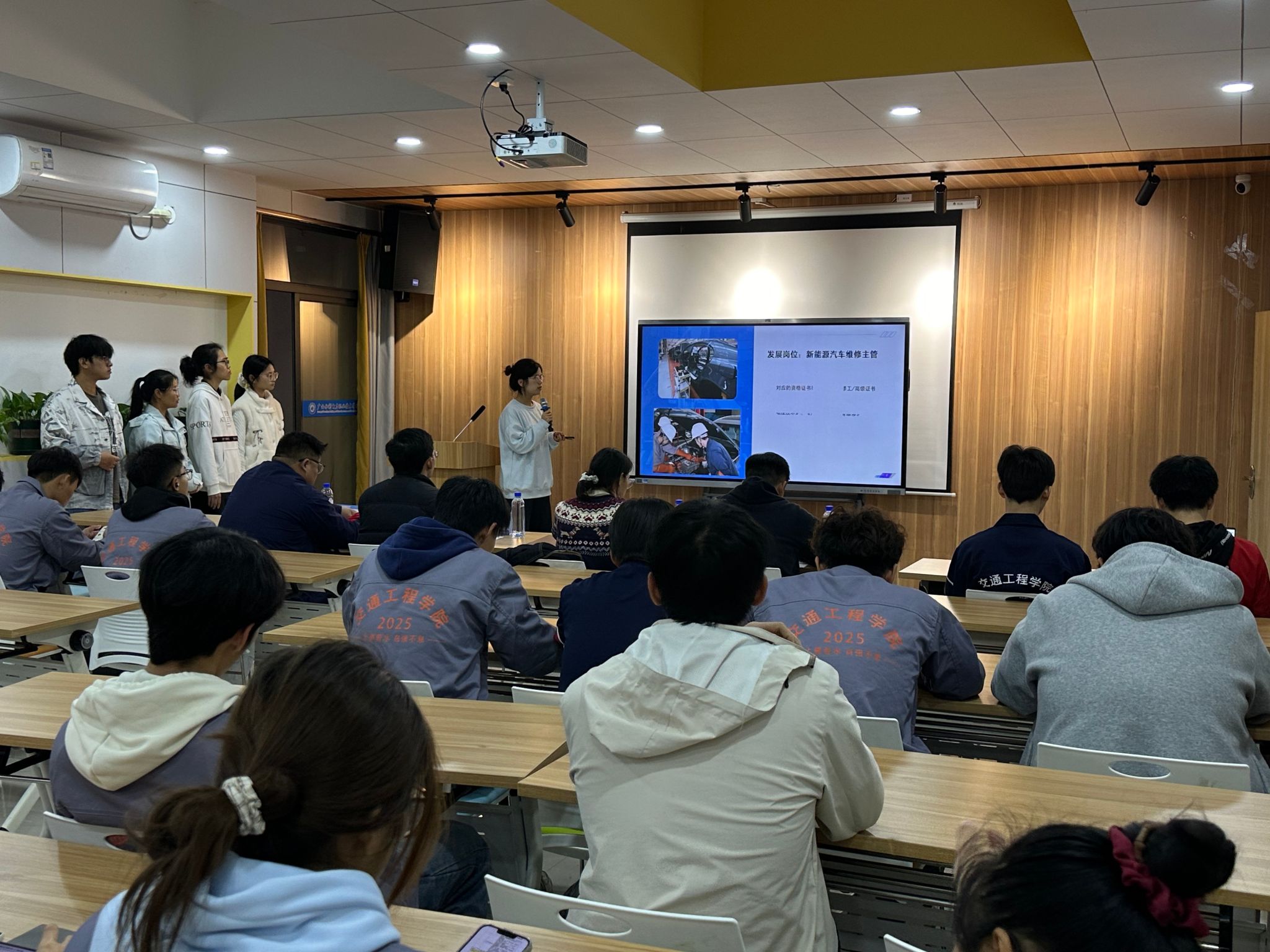 本届“说岗位”比赛自10月启动以来,历经初赛、复赛多轮选拔,最终14支队伍脱颖而出,晋级学院决赛。决赛中,参赛选手围绕岗位核心职责、技能要求及职业发展路径等方面,进行了全面而深入的阐述,充分展现了交通工程学院学生积极进取、勇于探索的精神风貌。评委就岗位实操要点、行业发展趋势等议题进行提问与点评,并与学生开展互动交流,为其职业规划提供了专业而精准的指导。经激烈角逐,25智能网联1班“逐梦智驾六人行”与25新能源1班“动力先锋队”凭借优异表现荣获一等奖。