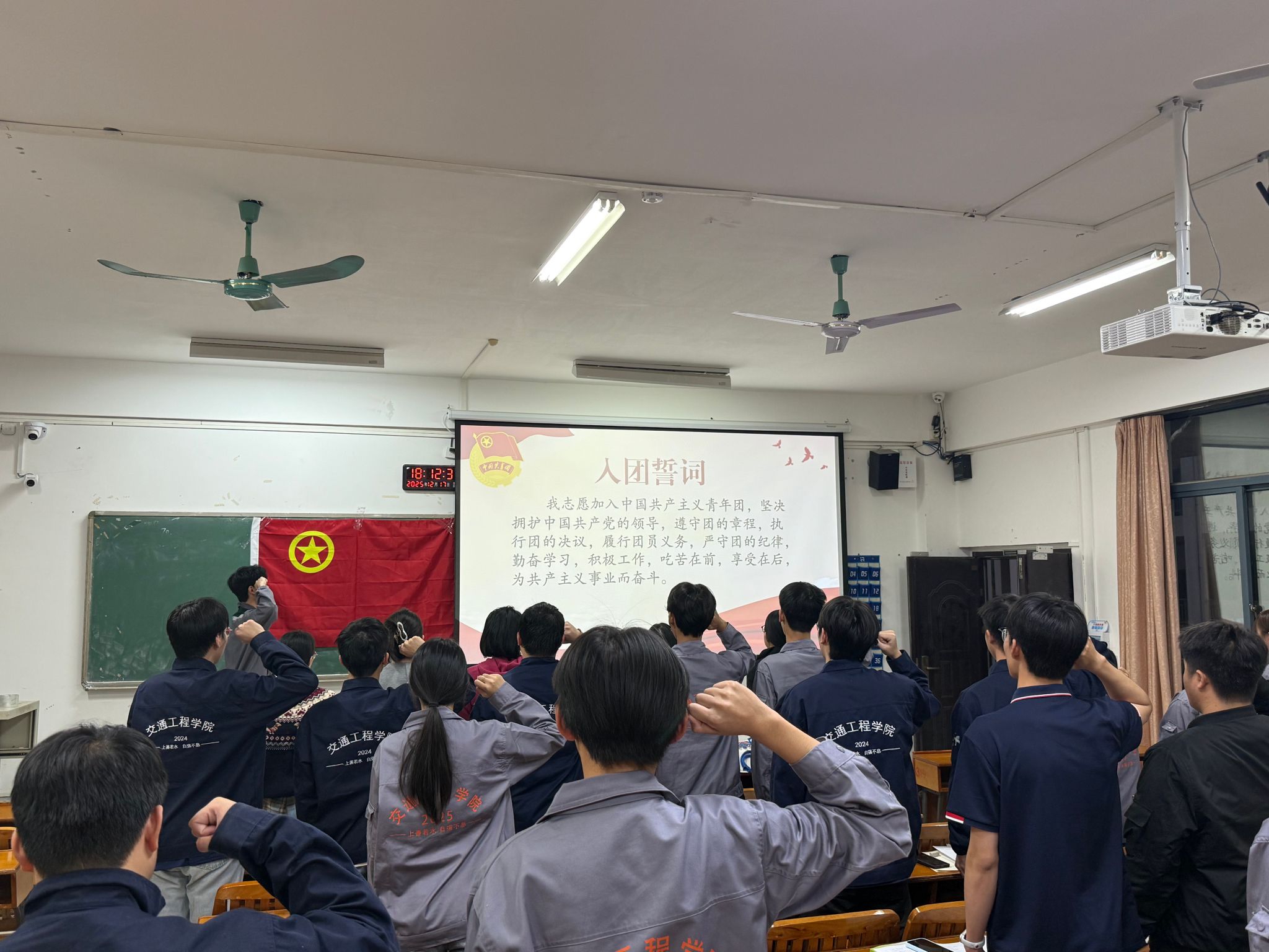 [本网讯]12月22日,交通工程学院在里建校区教学楼320教室举行2025年下半年新团员入团仪式,交通工程学院团委书记梁爱婵及辅导员代表出席仪式,全体新团员及老团员代表参加仪式。