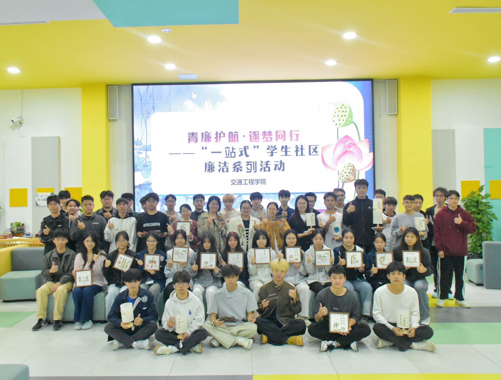 [本网讯]为全面深化“一站式”学生社区建设内涵式发展,筑牢青年学子廉洁修身思想根基,11月10日,党委学生工作部(学生工作处)举办“青廉护航・逐梦同行”廉洁系列主题活动,活动由交通工程学院承办,800余名学生共悟廉洁内涵、同修浩然正气。活动以“艺术传廉、文...