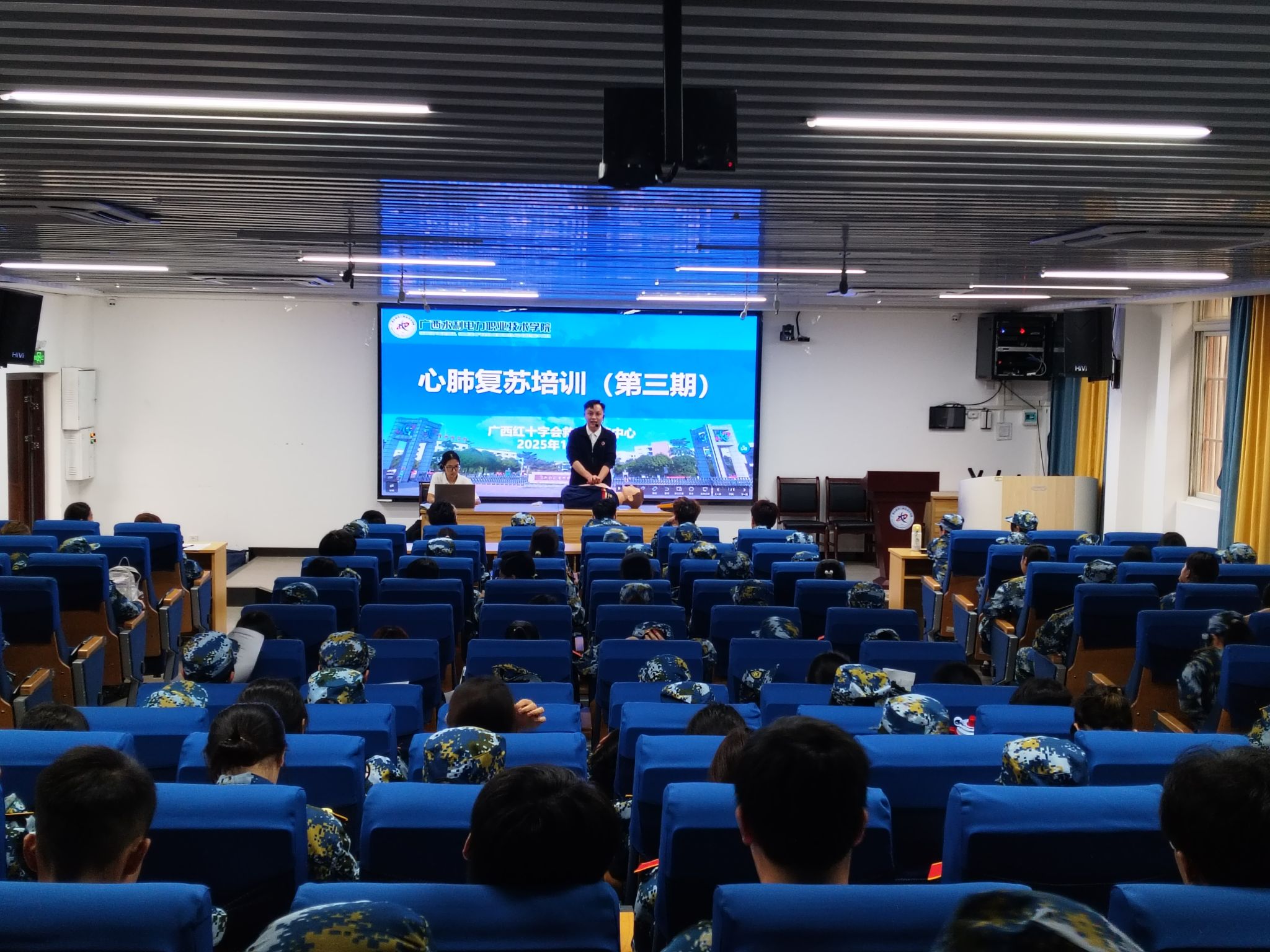 [本网讯]为扎实推进全国学校急救教育试点工作,进一步筑牢校园安全防线,11月8日,学校在2025级新生军训期间联合广西红十字会救护训练中心,组织开展心肺复苏与AED使用培训及考证活动,共有1100余名新生参加。培训现场,红十字会讲师结合真实急救案例,通过理论讲解...