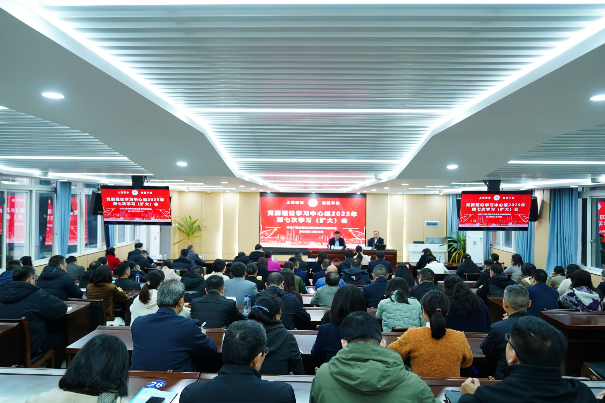 [本网讯]12月25日上午,学校在长堽校区召开党委理论学习中心组2025年第七次学习(扩大)会,学校党委书记李林主持会议并讲话。会议邀请广西社科院原党组书记、院长陈立生教授到校作题为《奋力开创中国式现代化建设新局面——深入学习贯彻党的二十届四中全会精神》的...